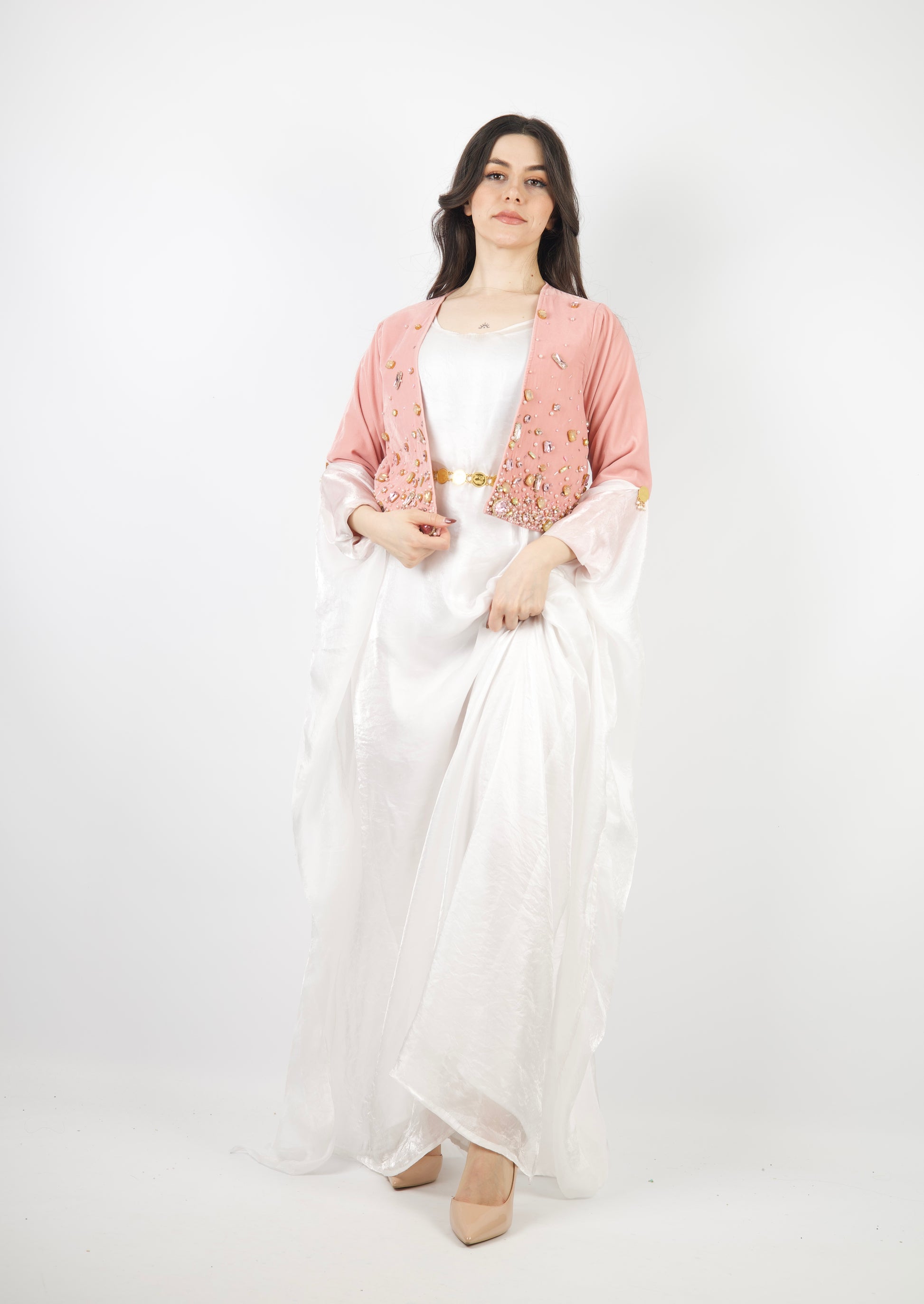 Adjustable silk Xane underdress in pink, adding a gentle layer of color beneath the Kras