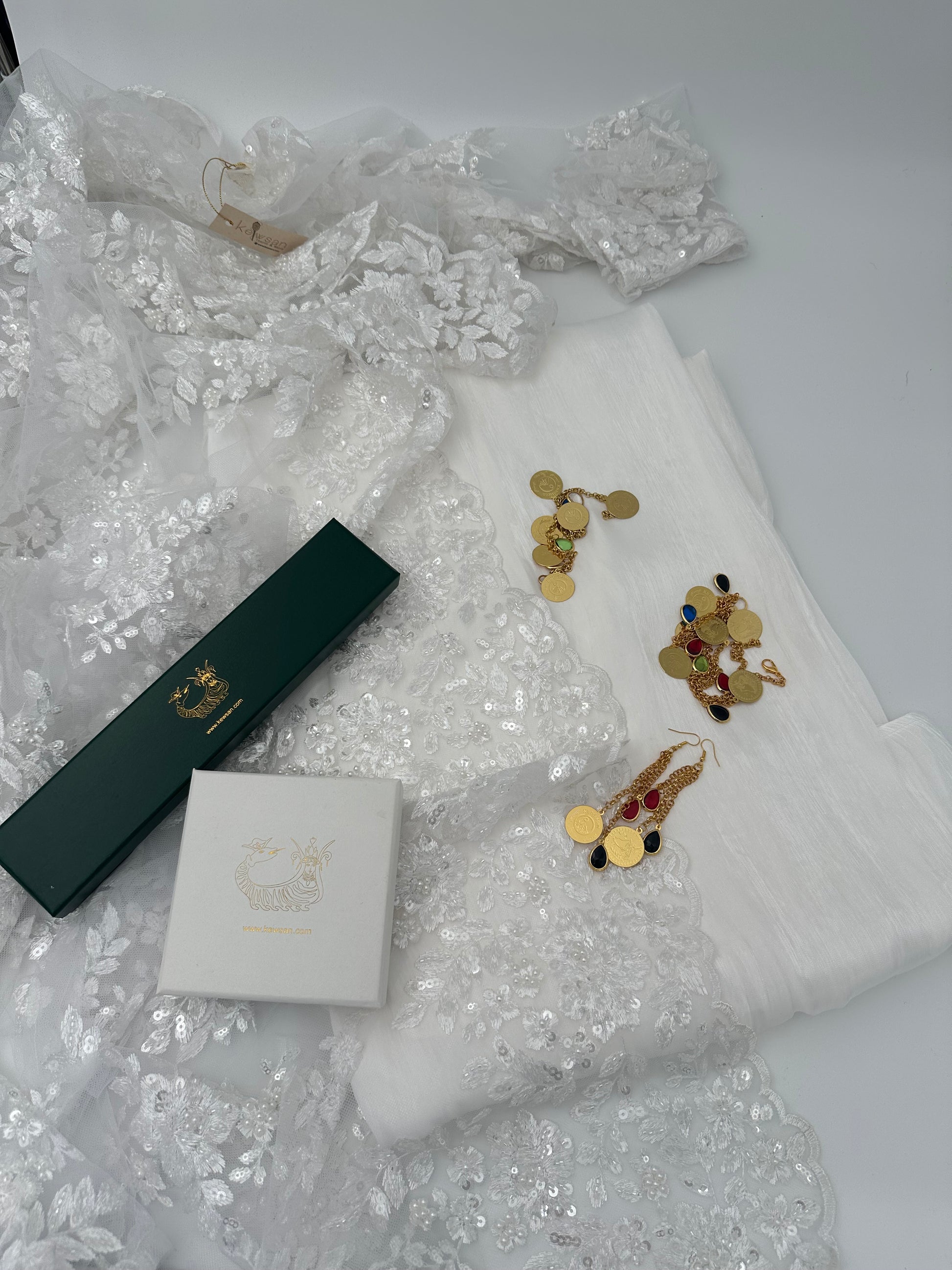 Die Dilber-Kollektion – All-White Edition – ist ein zeitloses dreiteiliges kurdisches Brautkleid, das für moderne Bräute entworfen wurde, die die Tradition ehren.