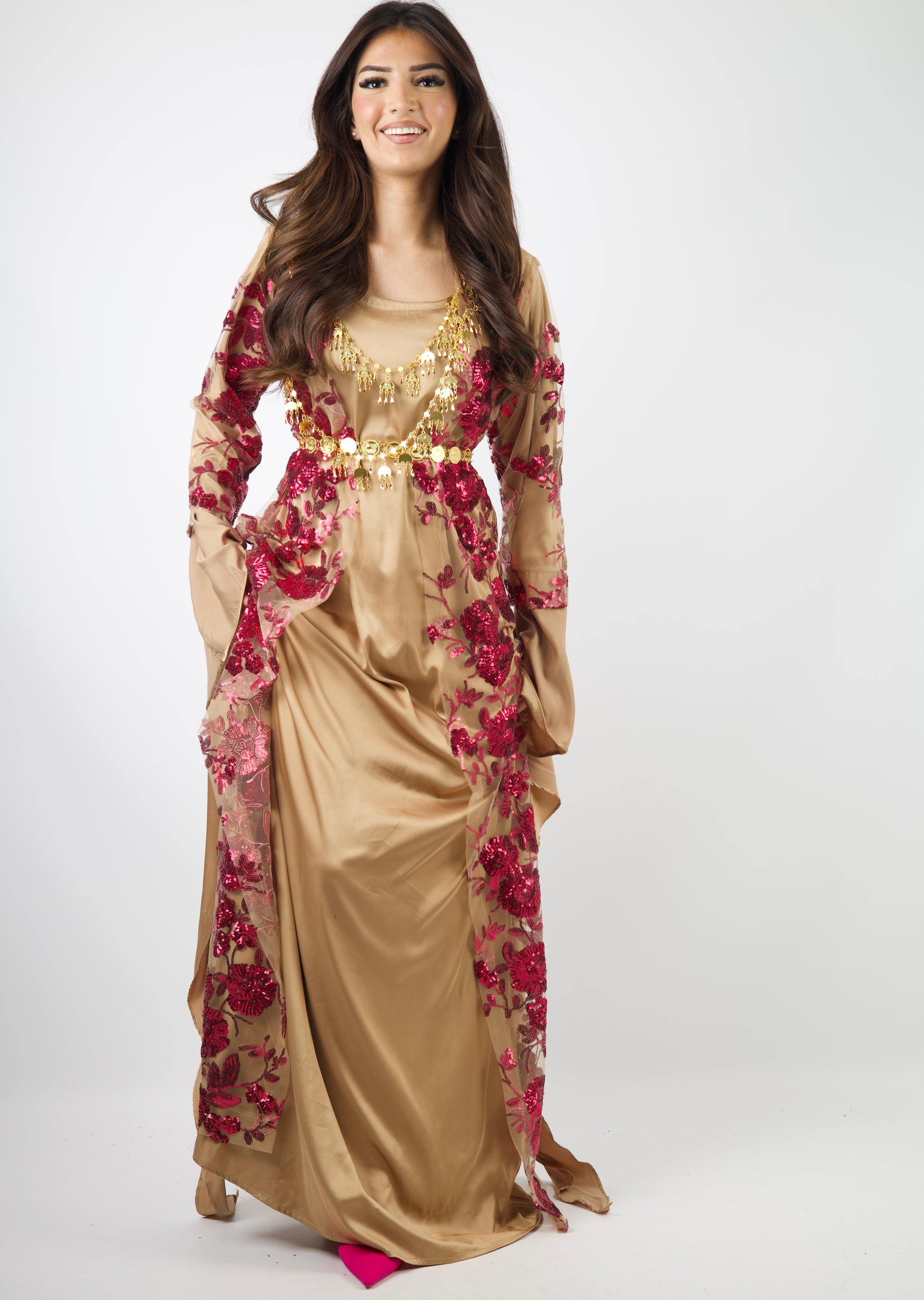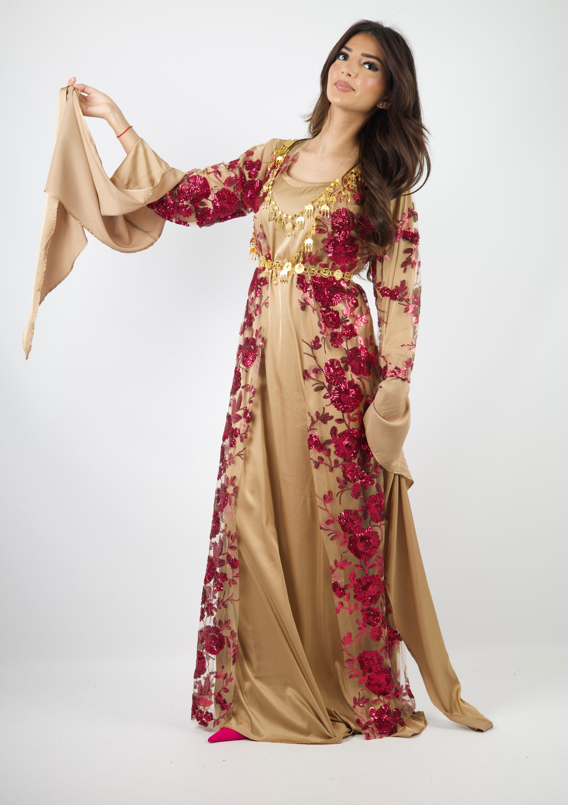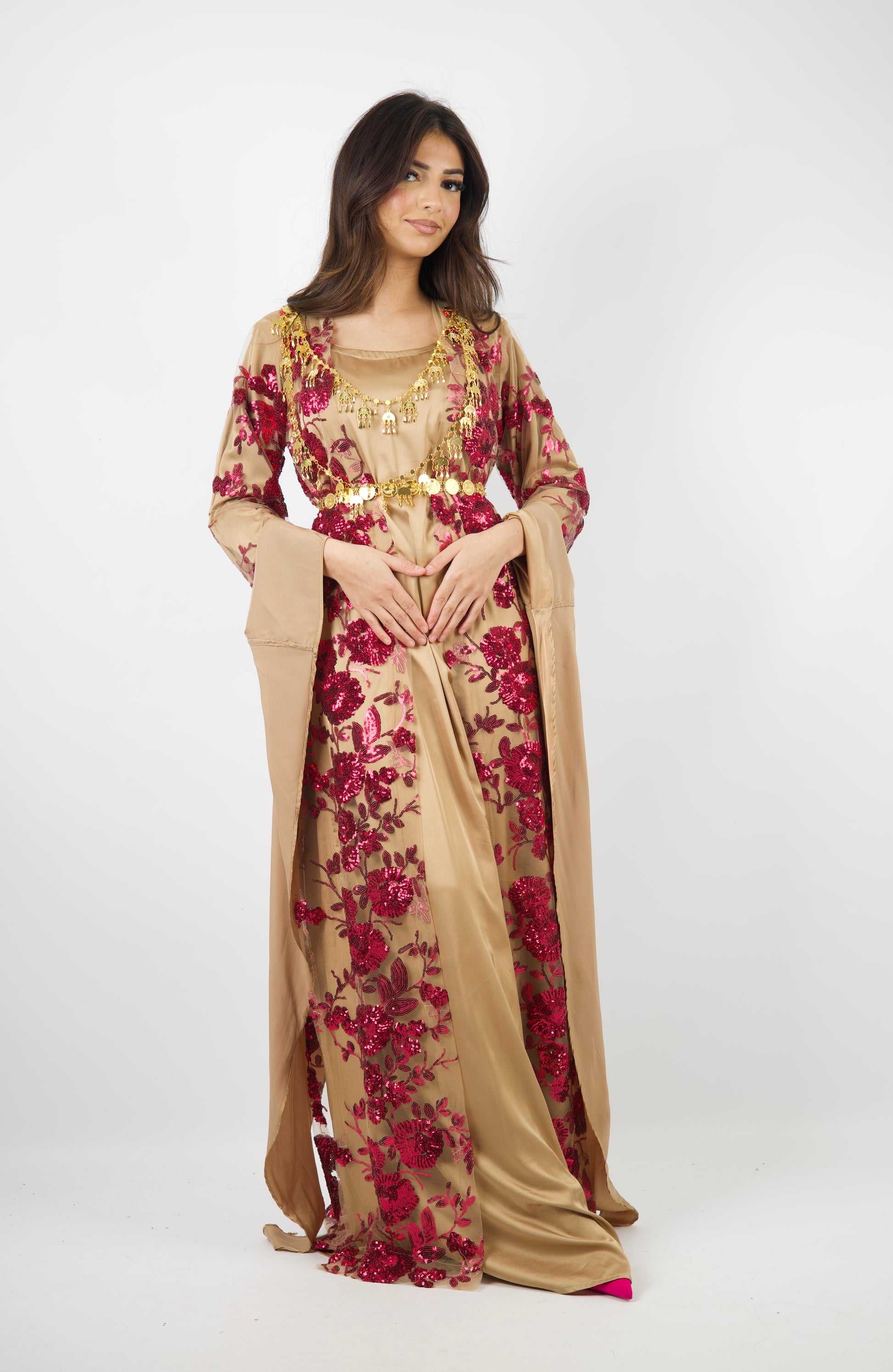 The Dildar Collection is now available in a stunning new color: nude beige skin tone with MAgneta shiny embroidered flowers. This elegant Kurdish dress (Kurdisches Kleid / Cilket Kurdi / Jli Kurdi) is one of our best-selling collections, loved for its comfort, beauty, and timeless Kurdish design.