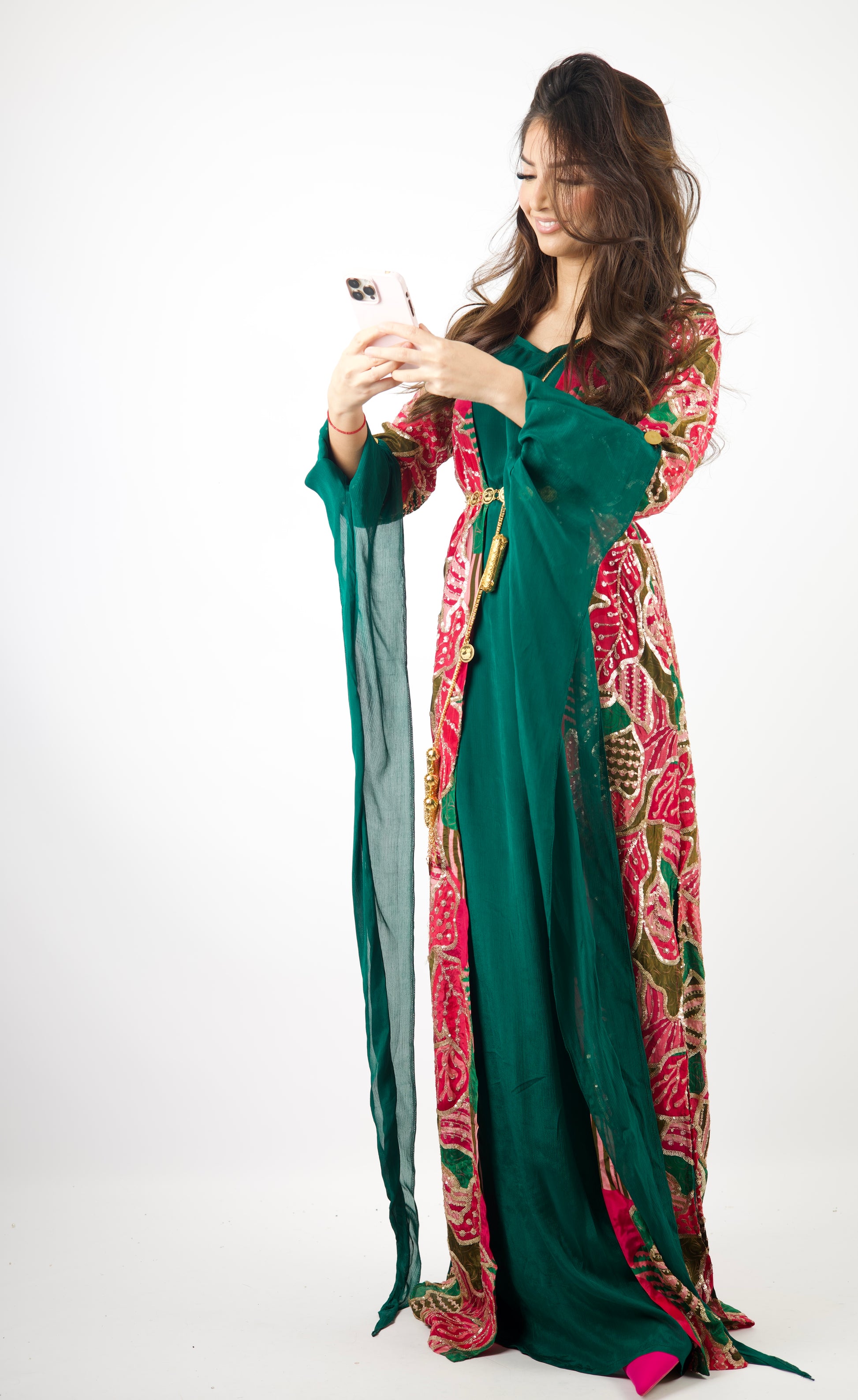 We discovered this beautiful design during a summer 2025 trip to India together with my sister — and we instantly fell in love. Its colors feel like a blooming Kurdish garden: green leaves, warm gold sunlight, and soft pink flowers.