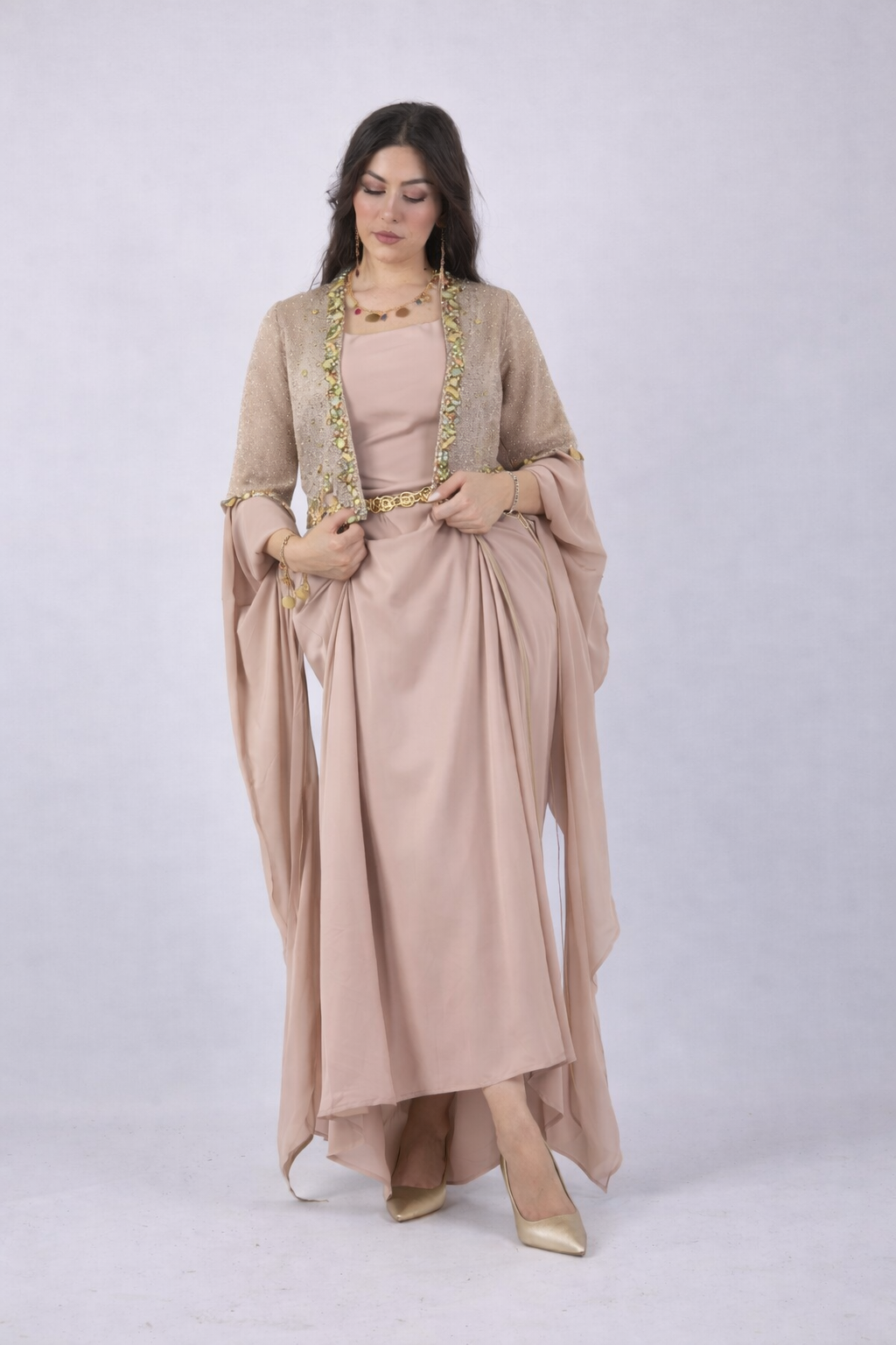 ئەم جلەی کوردی دەستکرد بە وردبینی و هەستیارانە دروست کراوە و لە کەلتووری کوردی وەرگیراوە. جلەکە بە دەستی هونهرمەند دروست کراوە و بە بەردی Swarovski، کریستاڵ و مرواری دەستدانراو جوان کراوە.