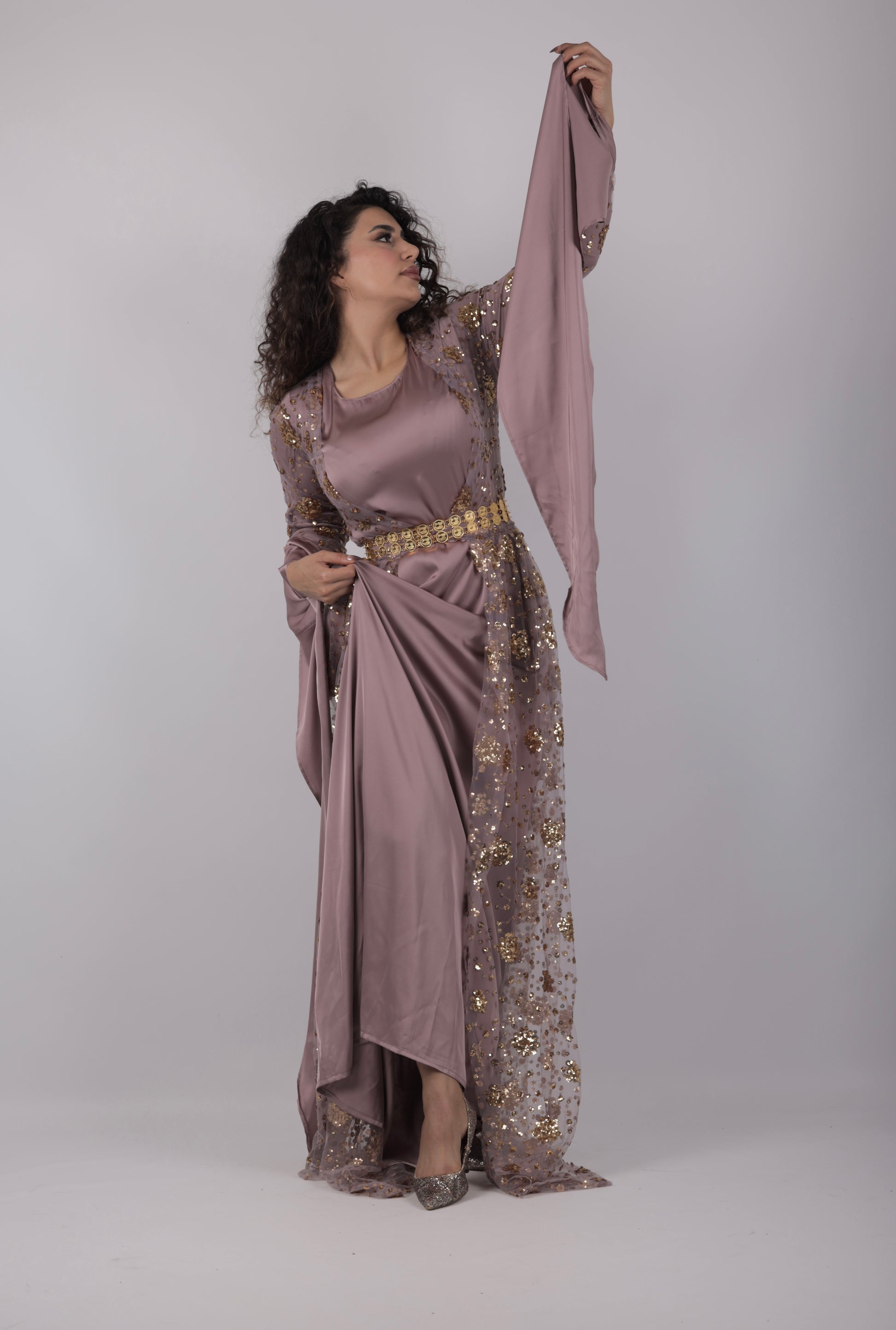 Chro Collection – Badini Design Lavender Kurdish Dress with Golden Flowers (Badini Design, 2-Piece Set)