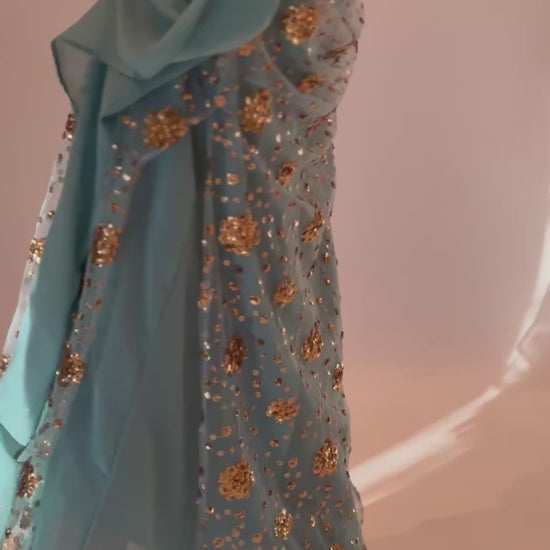 Kurdish dress, Kurdish clothes, Kurdish traditional dress, handmade Kurdish dress, sky blue Kurdish dress, Newroz dress, Kurdish wedding dress, buy Kurdish clothes online, authentic Kurdish fashion, golden sequin Kurdish dress.