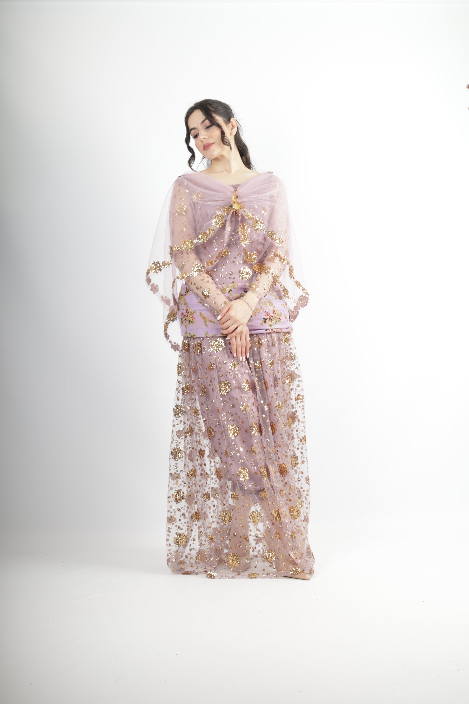 The Chro SEQZI Lavender Kurdish Dress is a traditional Kurdish dress from Rojhalat Kurdistan, inspired by the Saqez, Bane, and Mukriyan areas.