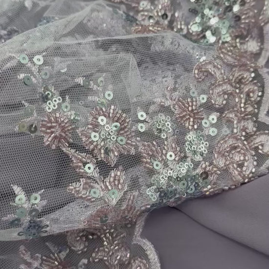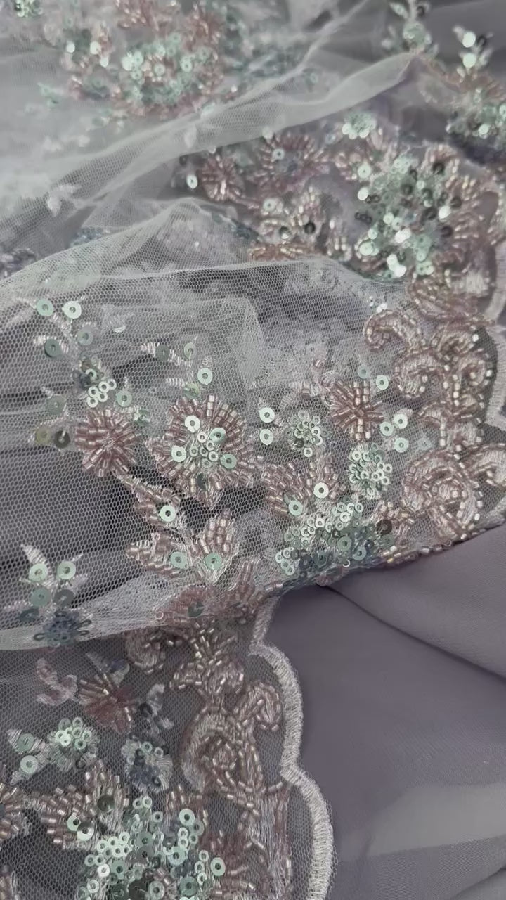 kawa: Mesh embroidery with crystal and sequins decorated with delicate crystal and sequin embroidery on both front sides (Kawa/Kaftan style)-