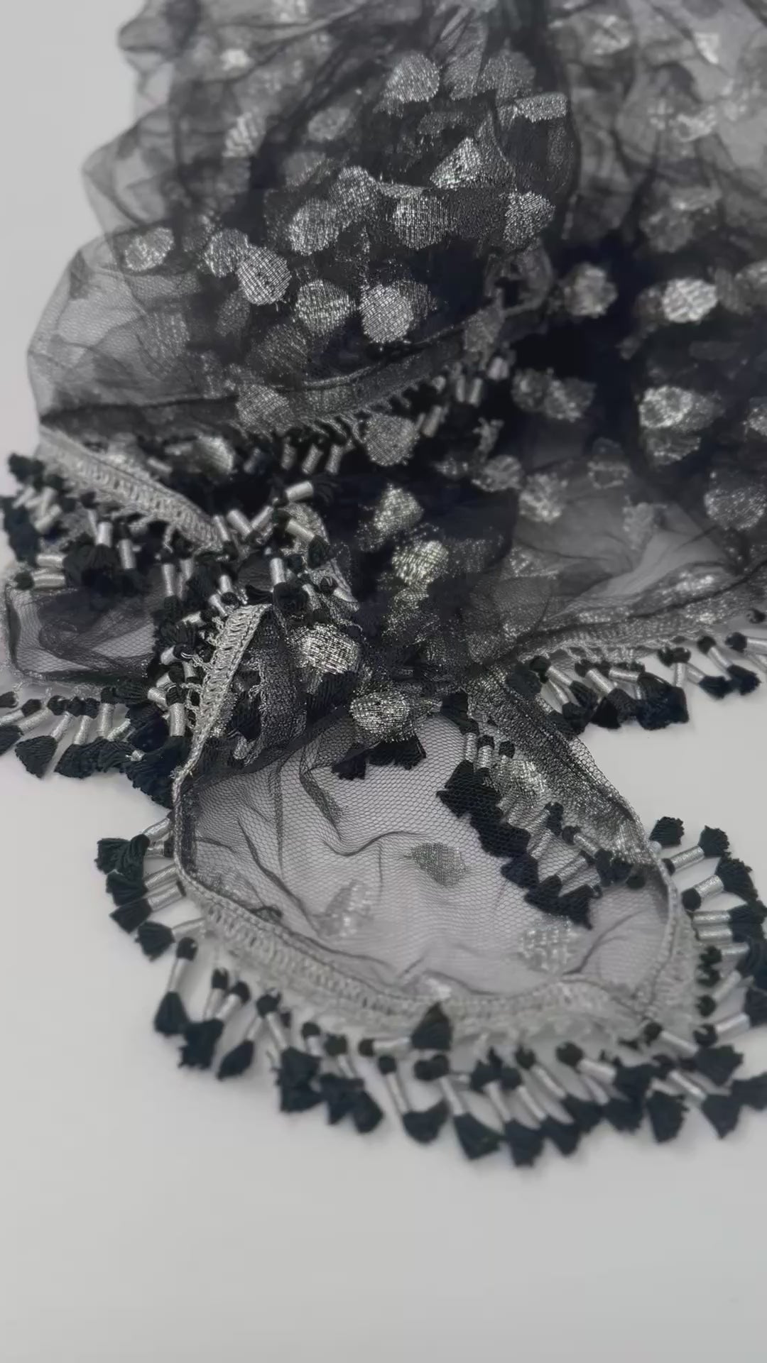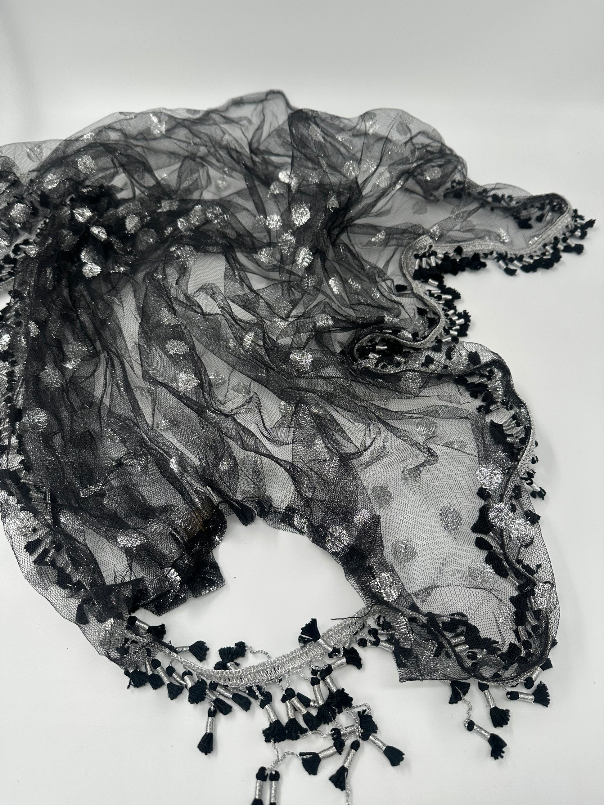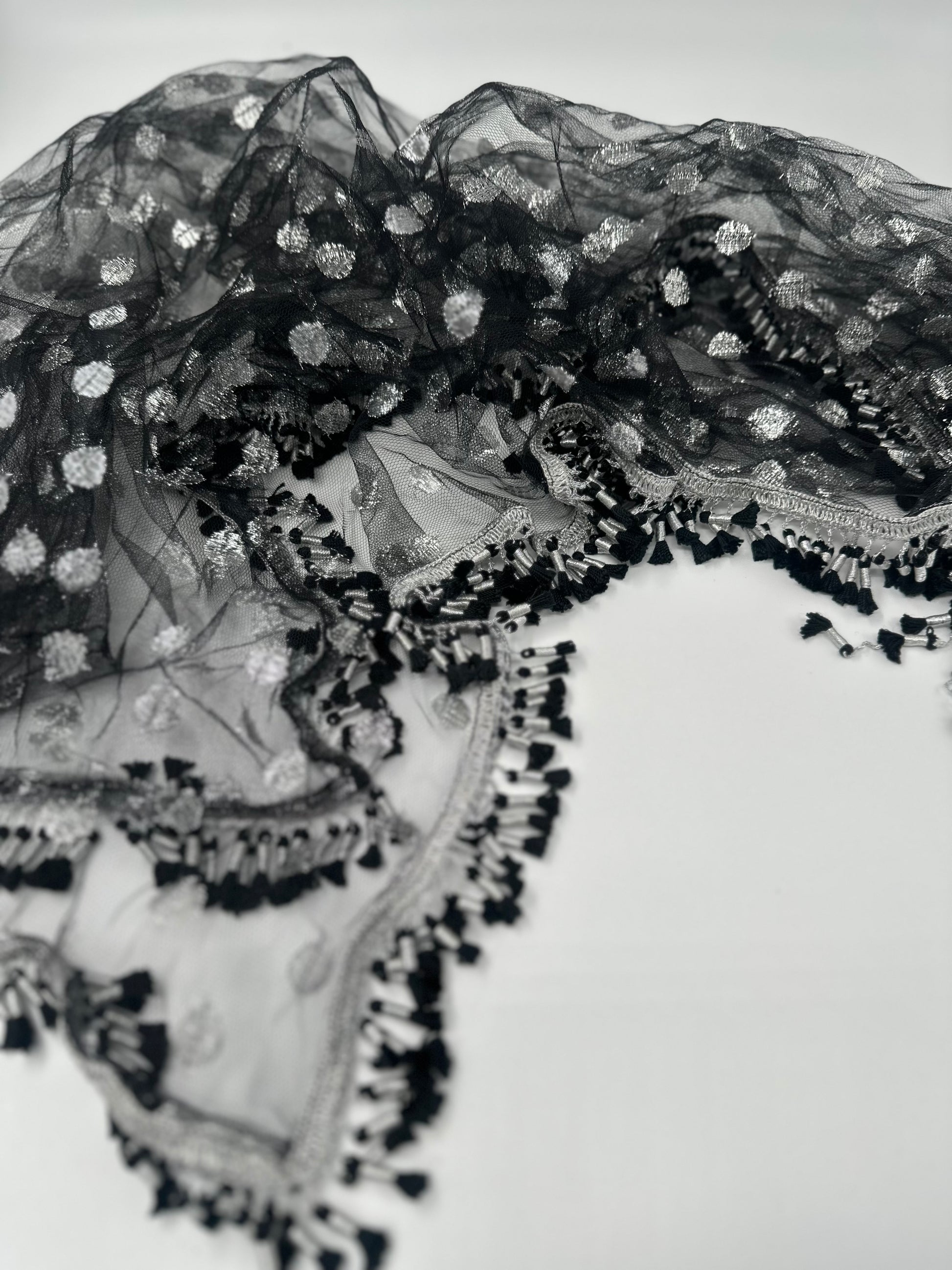 🖤 Kolwane Bala Barz – Handmade Kurdish Shoulder Shawl with silver & Black Golang Trim