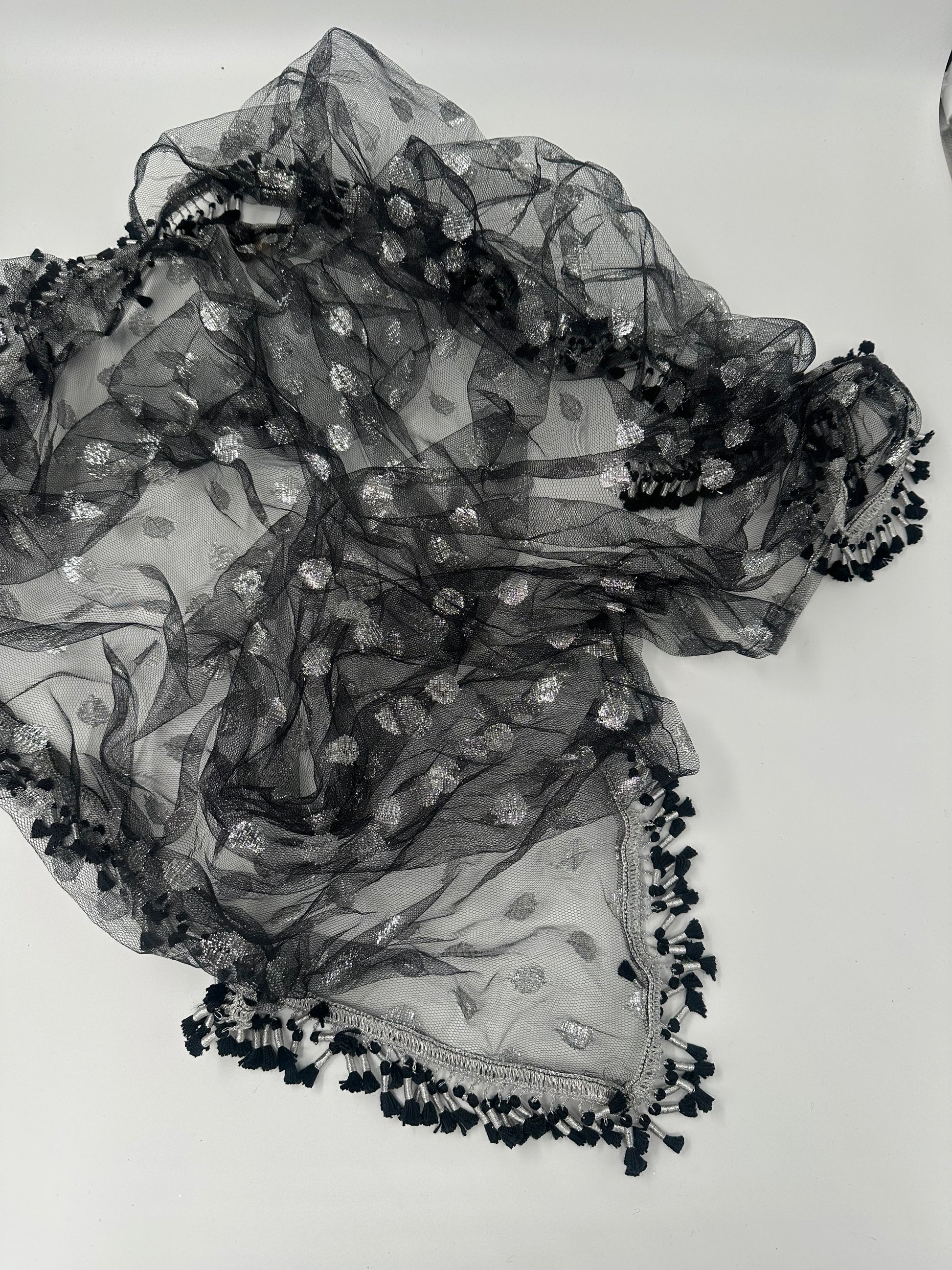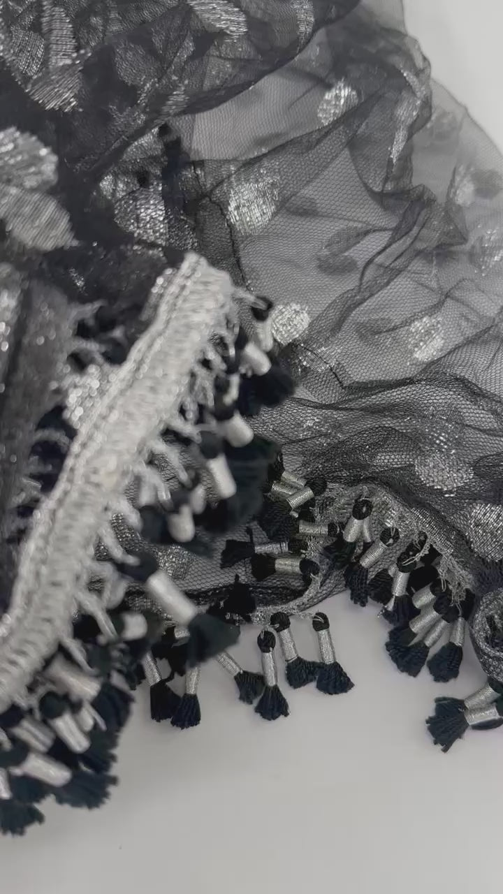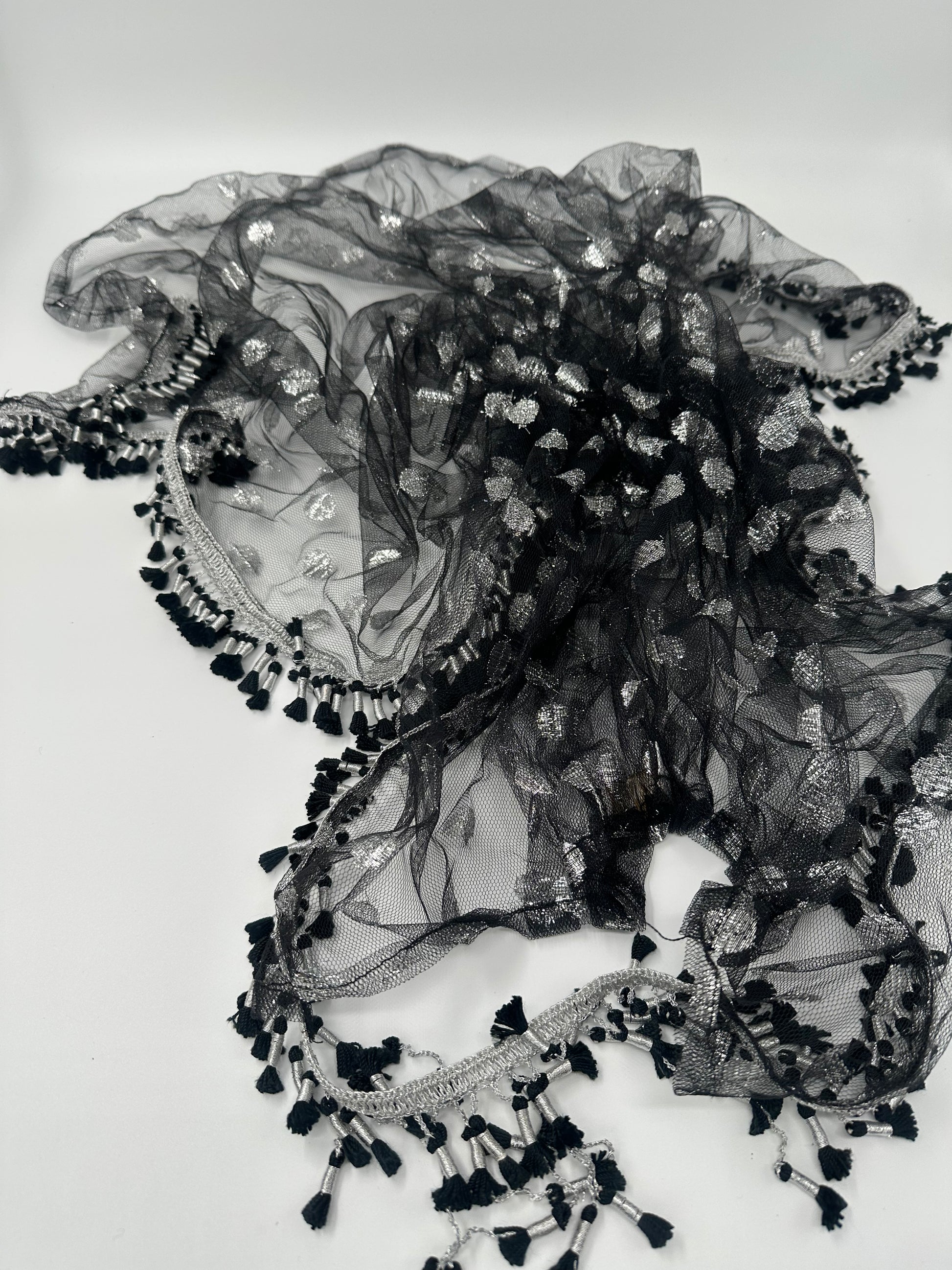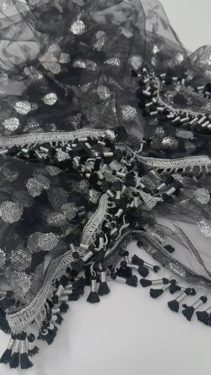 🖤 Kolwane Bala Barz – Handmade Kurdish Shoulder Shawl with silver & Black Golang Trim