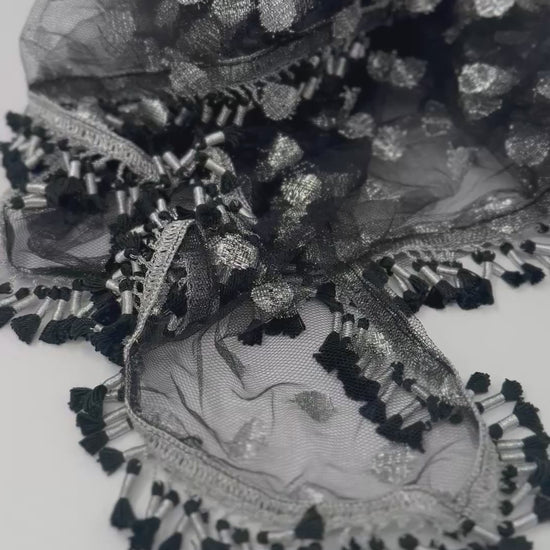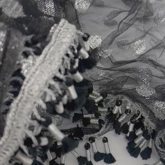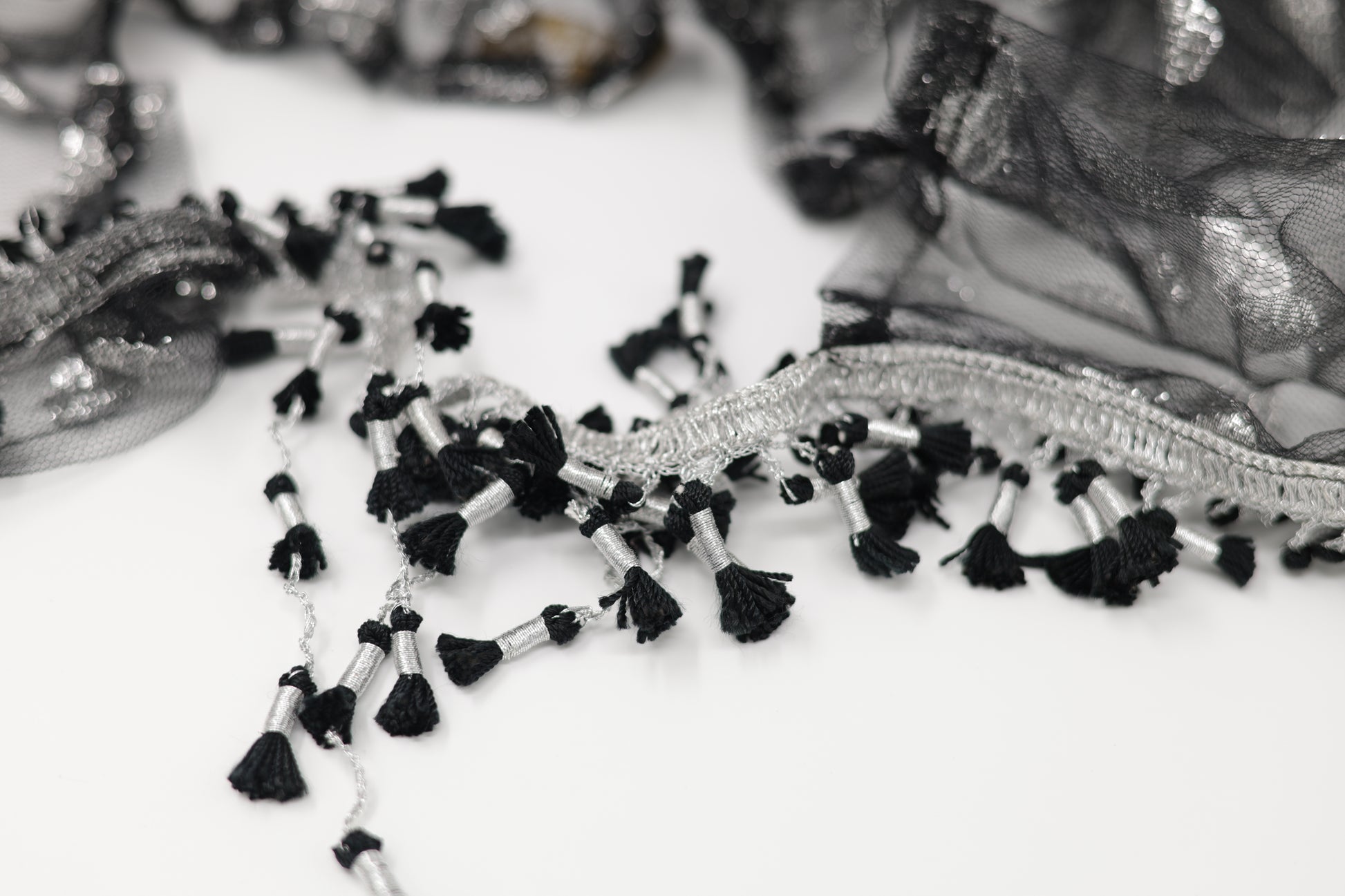 Handmade Golang Fringe: Crafted with dense, high-quality silver and black Golang
