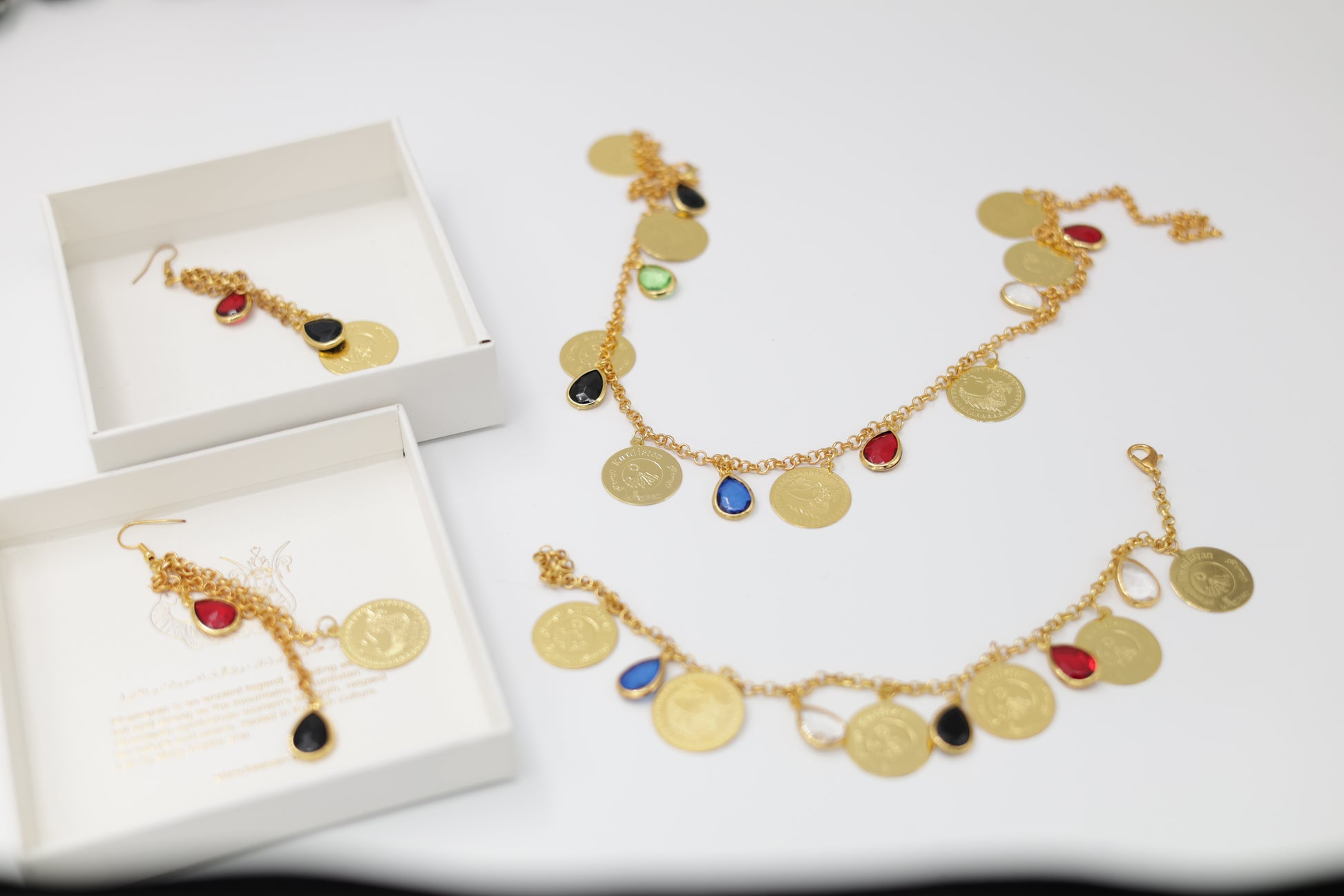 Shamaran Kurdish Coin Accessory Set – Necklace, Arm Band & Earrings