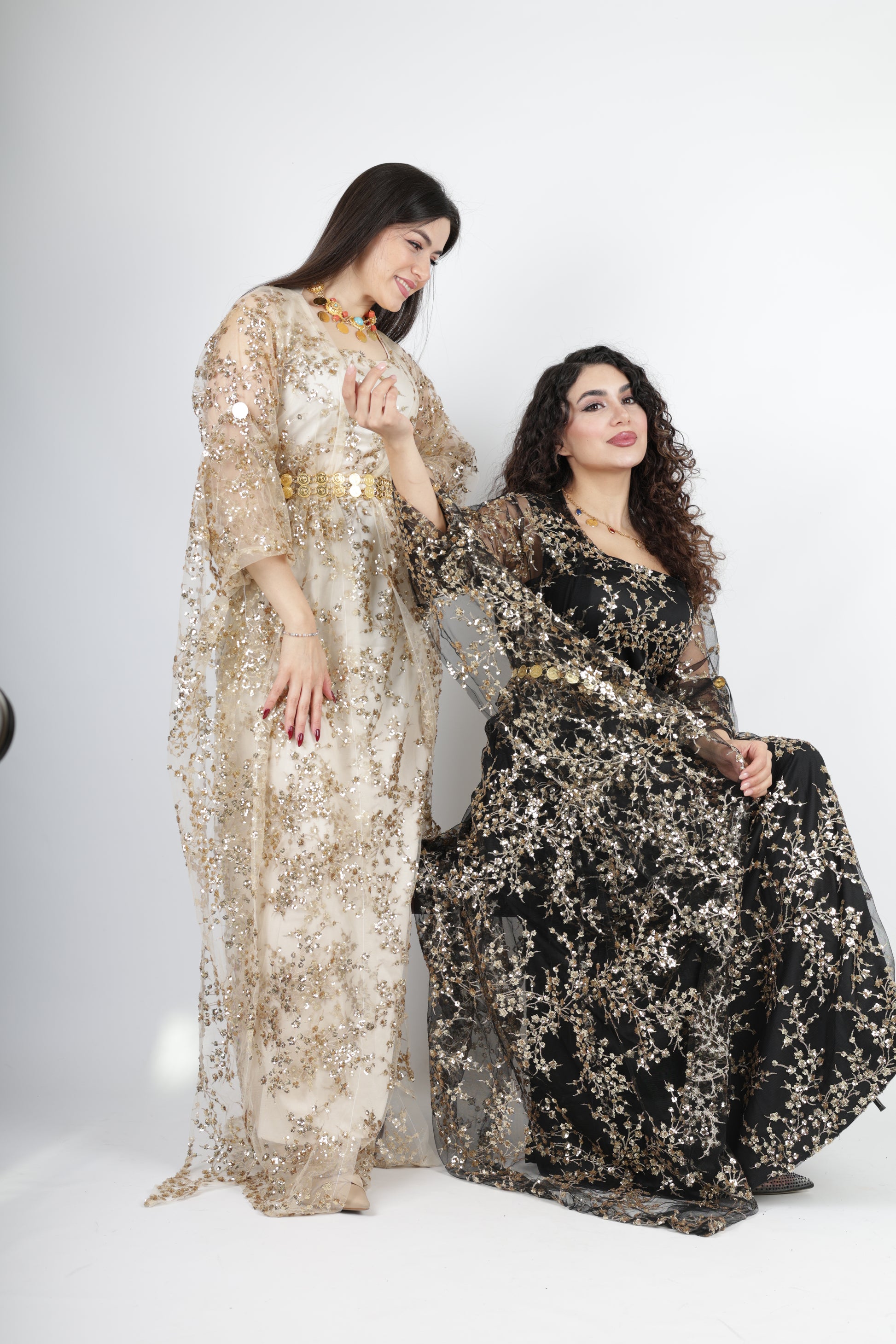 This outfit is designed to celebrate Kurdish femininity, beauty, and tradition while adding a modern, glamorous touch. Whether you’re dressing for a special event, a cultural gathering, or a celebration, this gold sequin set makes an unforgettable impression.