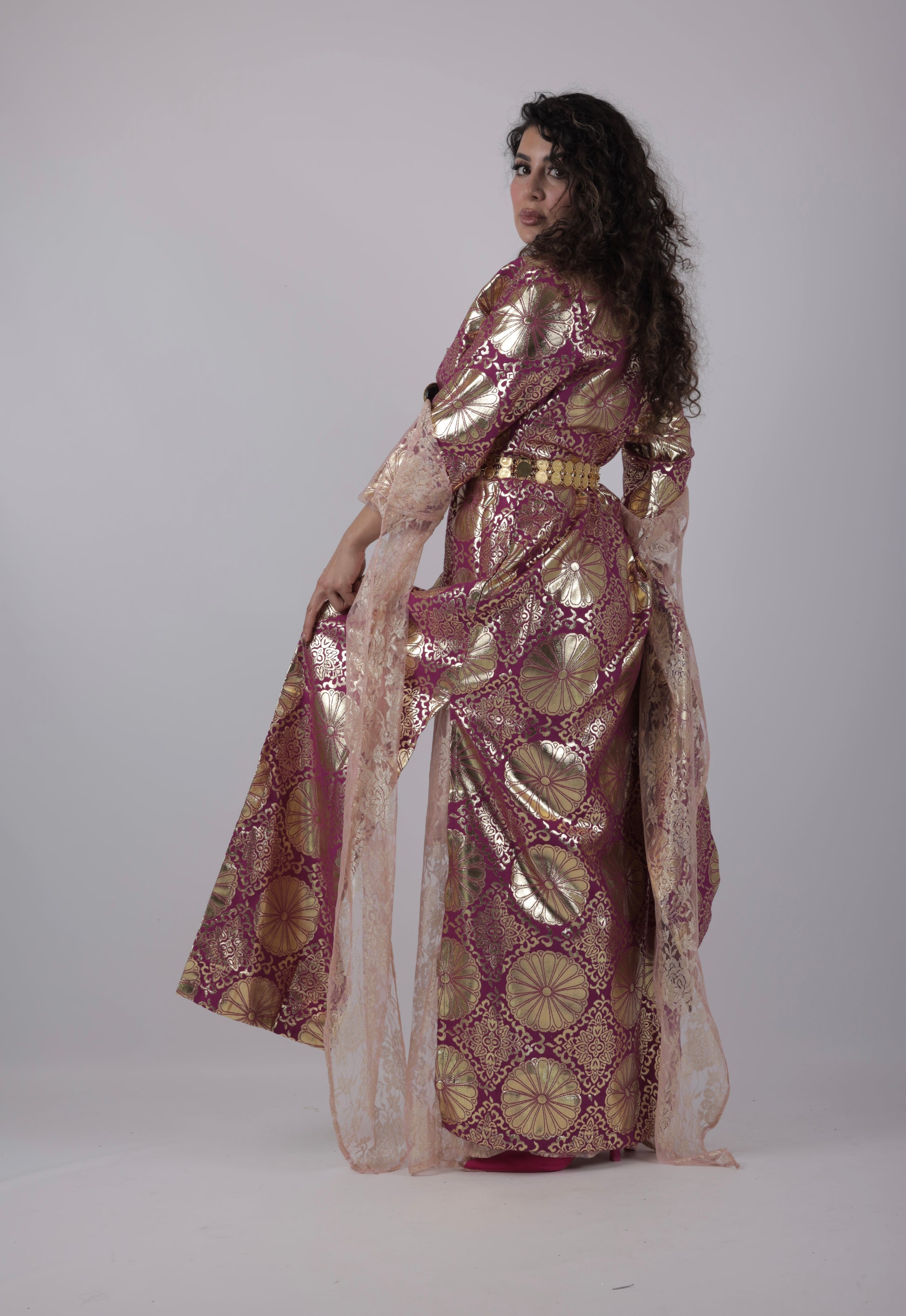 👌high quality long kawa or Khaftan long kawa in maroon golden fabric from 70s- 80s