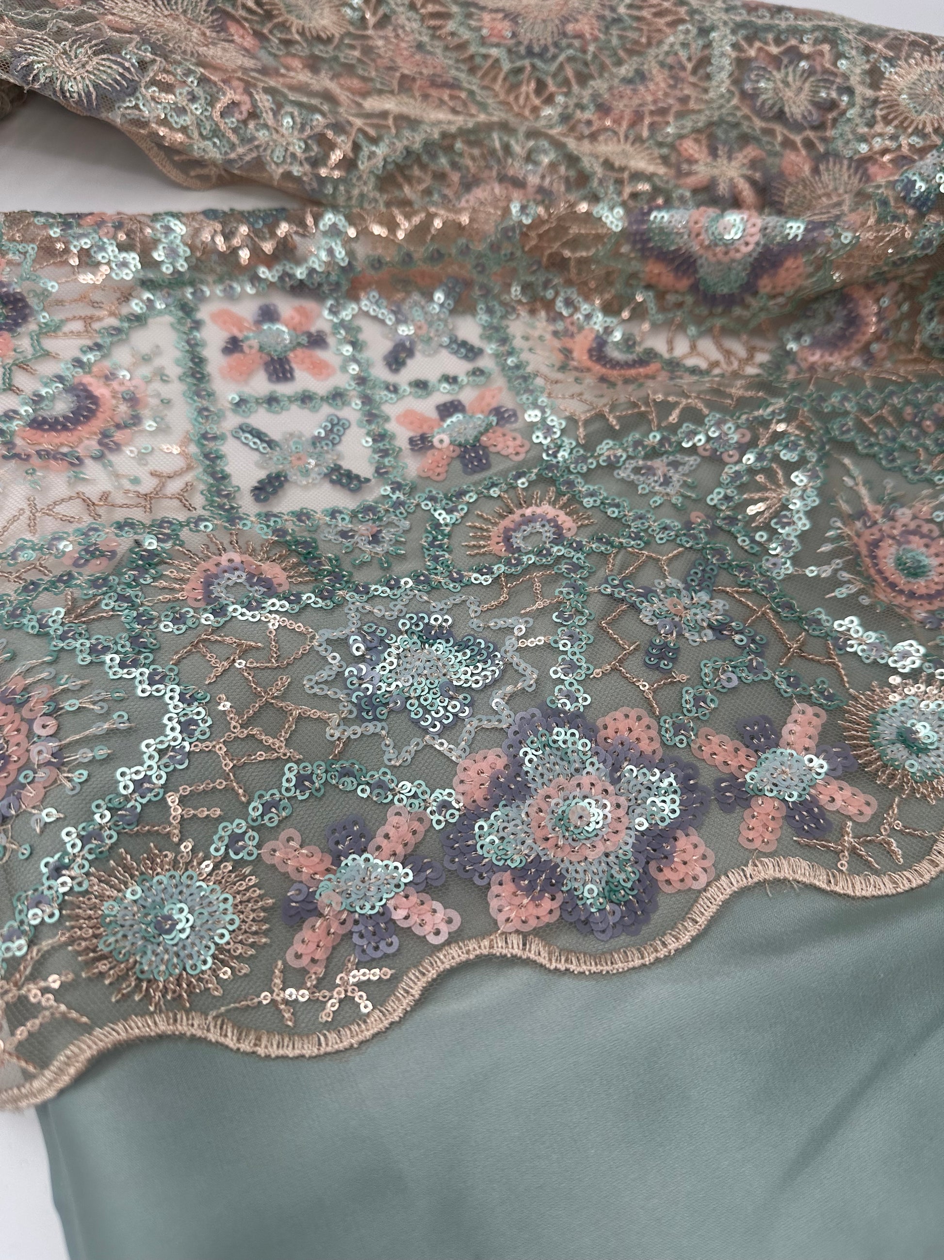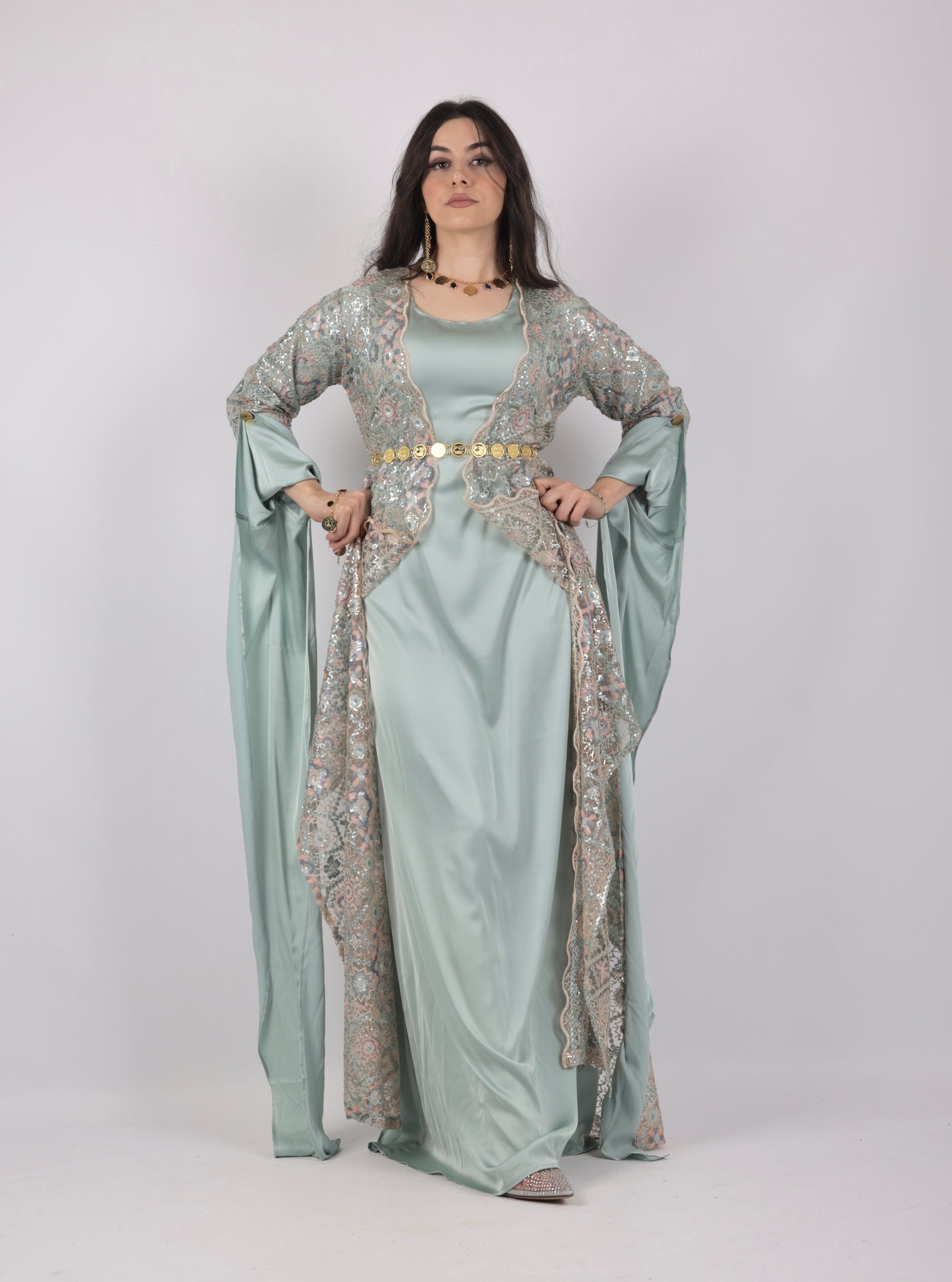 Dayan Kurdish Dress – Elegant Green & Turquoise Traditional Kurdish Outfit | Adjustable Kras & Sequin Embroidery