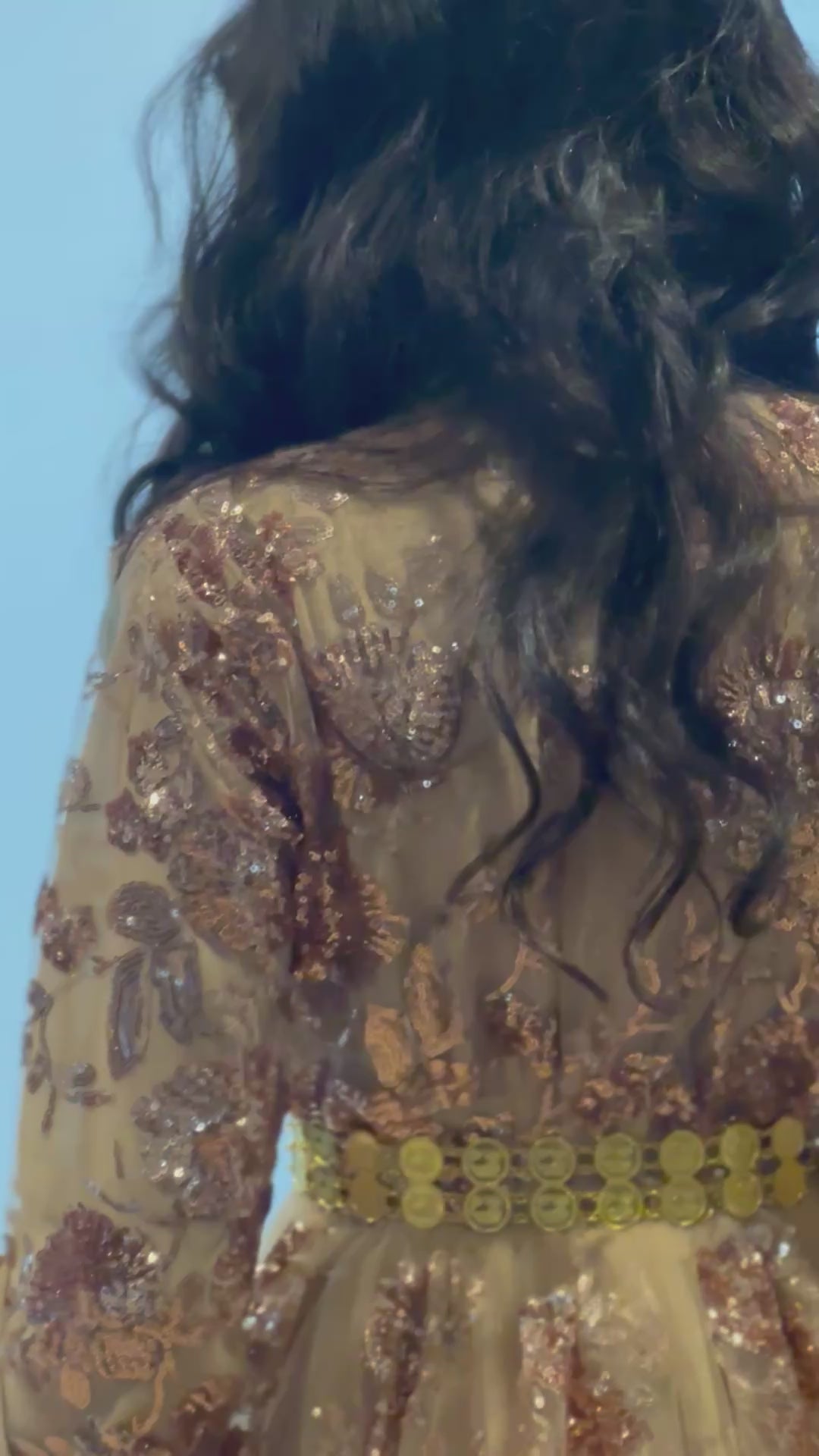 Elegant Design: Inspired by the beauty of nature, the Dildar dress showcases a breathtaking blend of shimmering green and blue hues reminiscent of a duck's head glistening in sunlight. Crafted with a base of mesh adorned with high-density sequins embroidery, this dress exudes sophistication and grace.