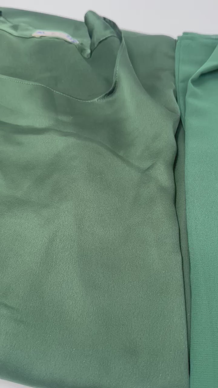 ✔ Embroidered Kawa (Outer Layer): Green mesh fabric with delicate green sequin embroidery.