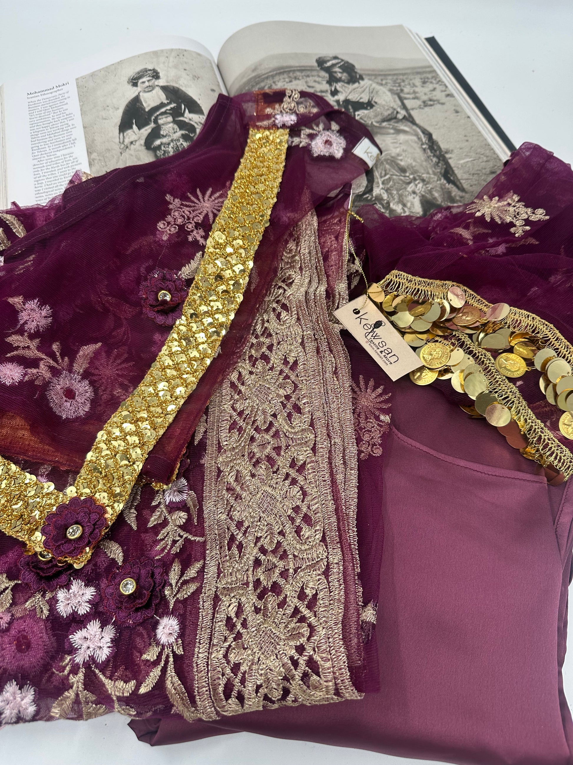Xezal Collection – 4-Piece Kurdish Dress Set in aubergine