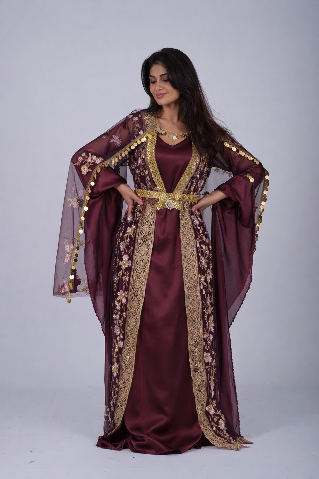 Embrace the richness of Kurdish culture with the Shirin Collection in burgundy red wine. This dress set combines heritage and elegance, making it the perfect choice for modern Kurdish women.
