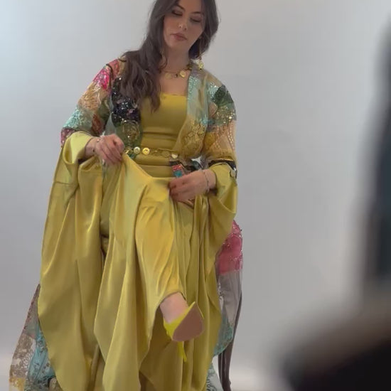 Keywords: Kurdish dress, eco-friendly Kurdish set, sustainable fashion, handmade in Kurdistan, Kurdish kawa, cultural clothing, Newroz dress, embroidered caftan, women artisans, sustainable caftan.