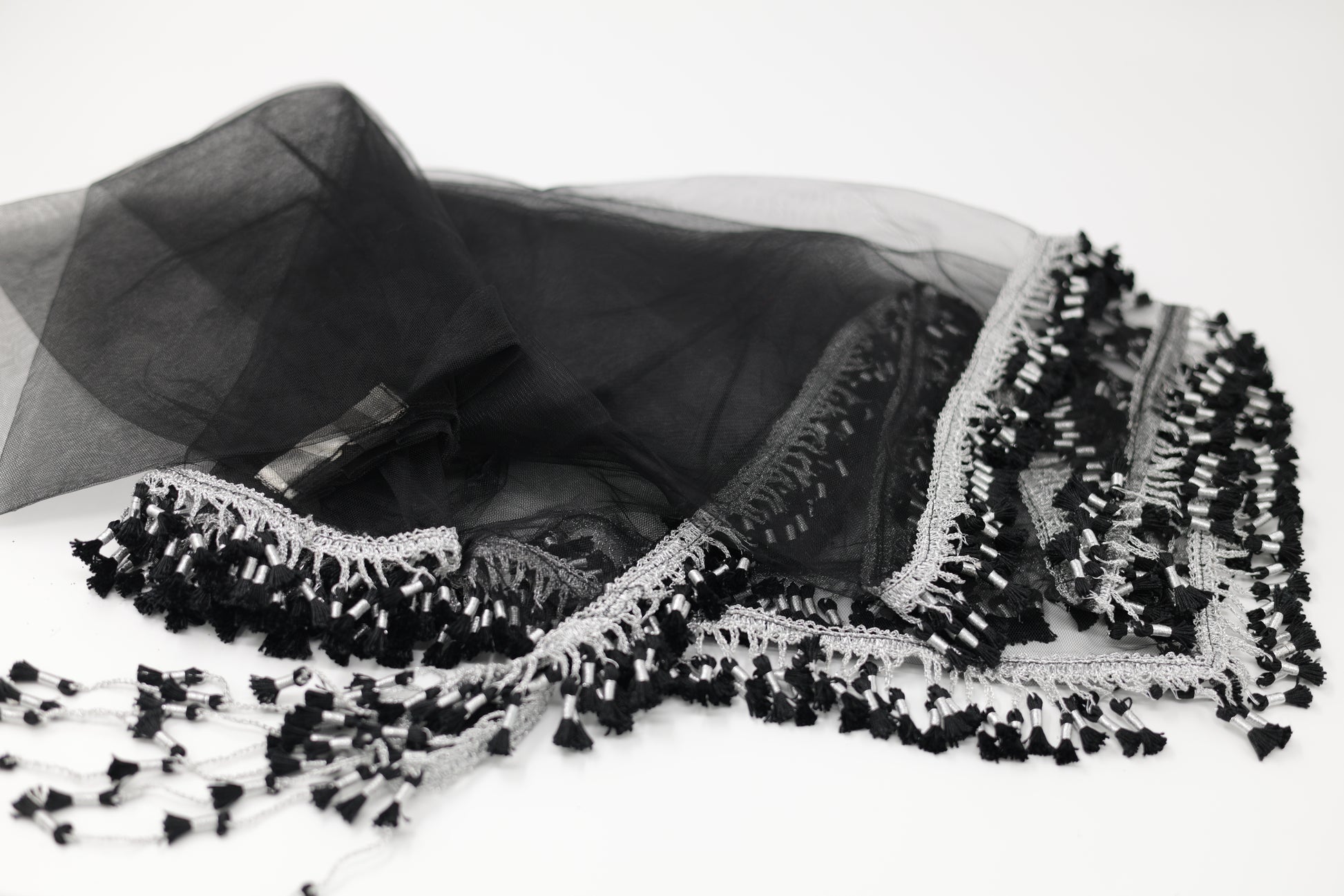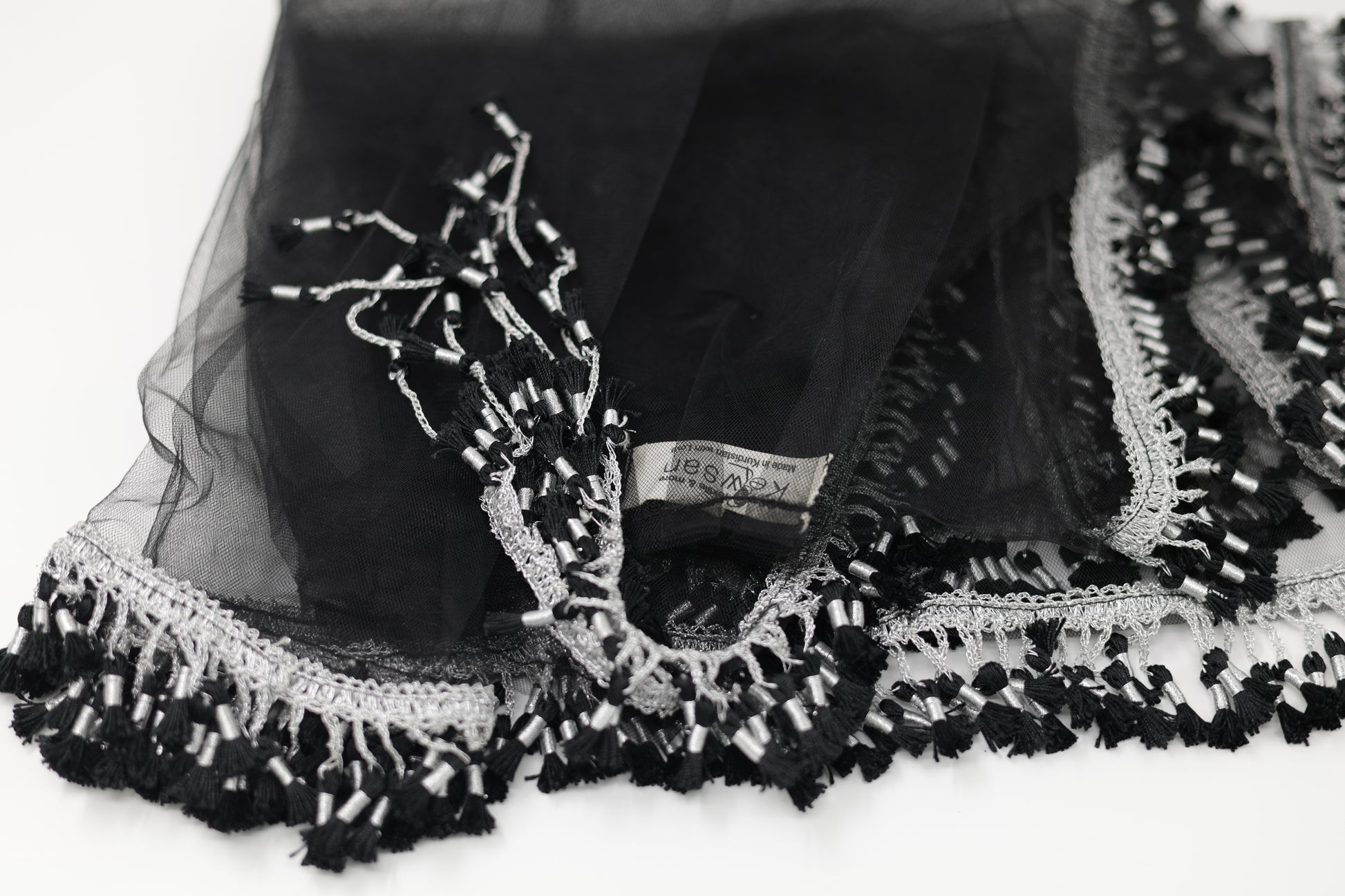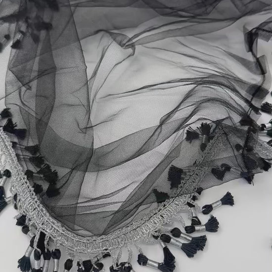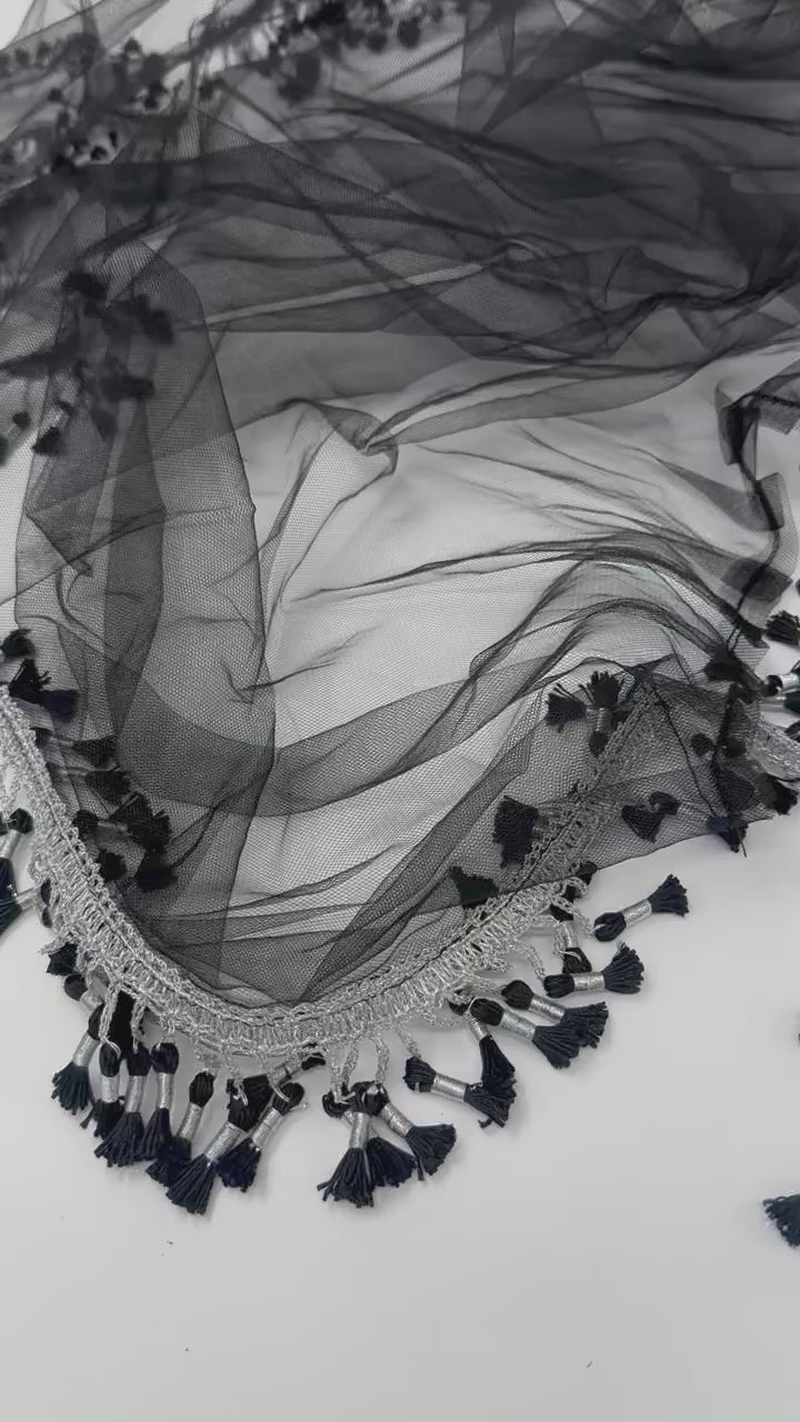This Black & Silver Charoke / Chatfe Kolwane is a refined and timeless piece inspired by classic Kurdish elegance. Made from light, high-quality net fabric, it allows the beauty of your dress to remain visible while adding its own graceful presence to your look.