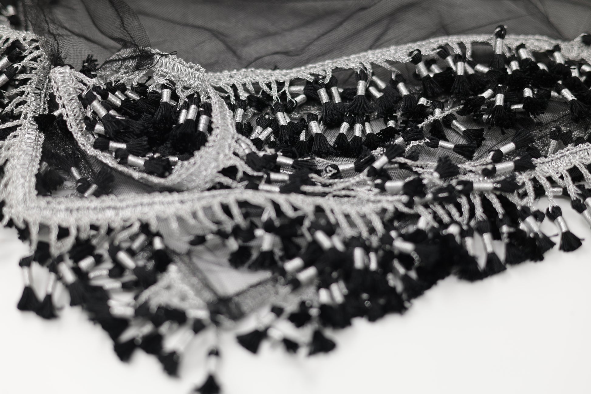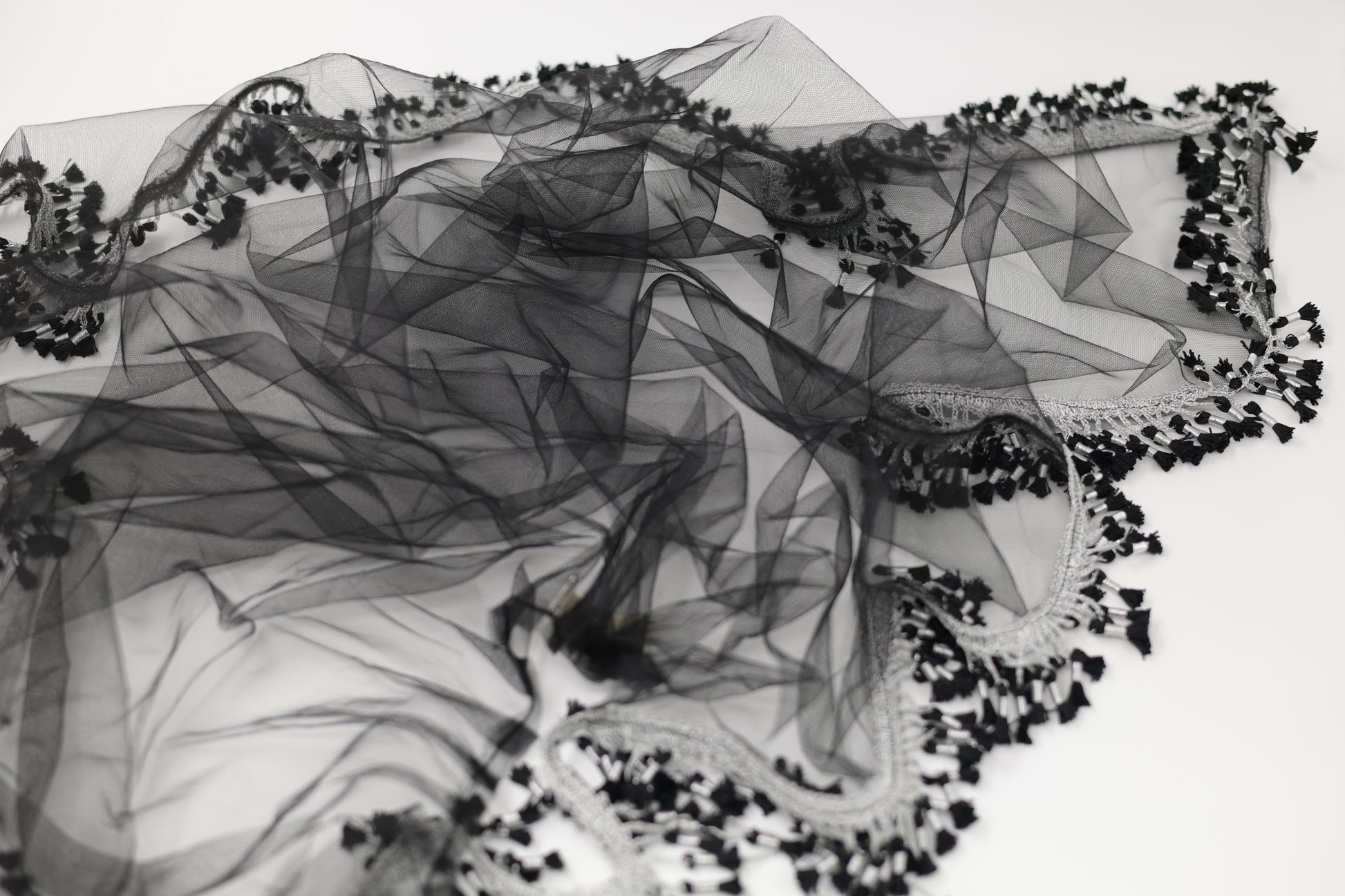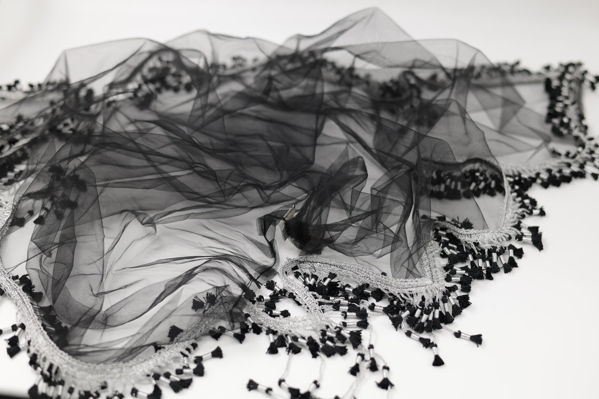 This Black & Silver Charoke / Chatfe Kolwane is a refined and timeless piece inspired by classic Kurdish elegance. Made from light, high-quality net fabric, it allows the beauty of your dress to remain visible while adding its own graceful presence to your look.