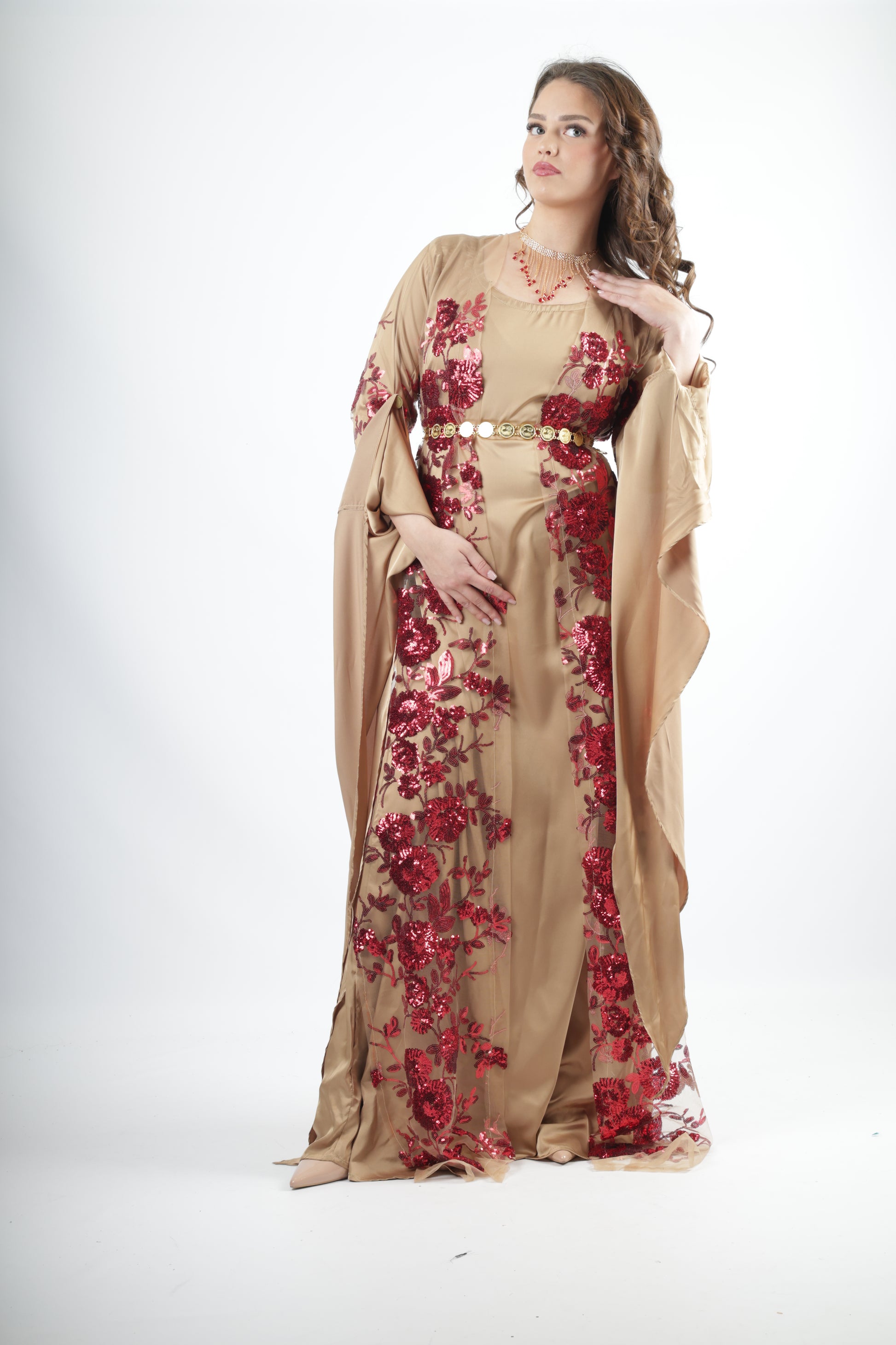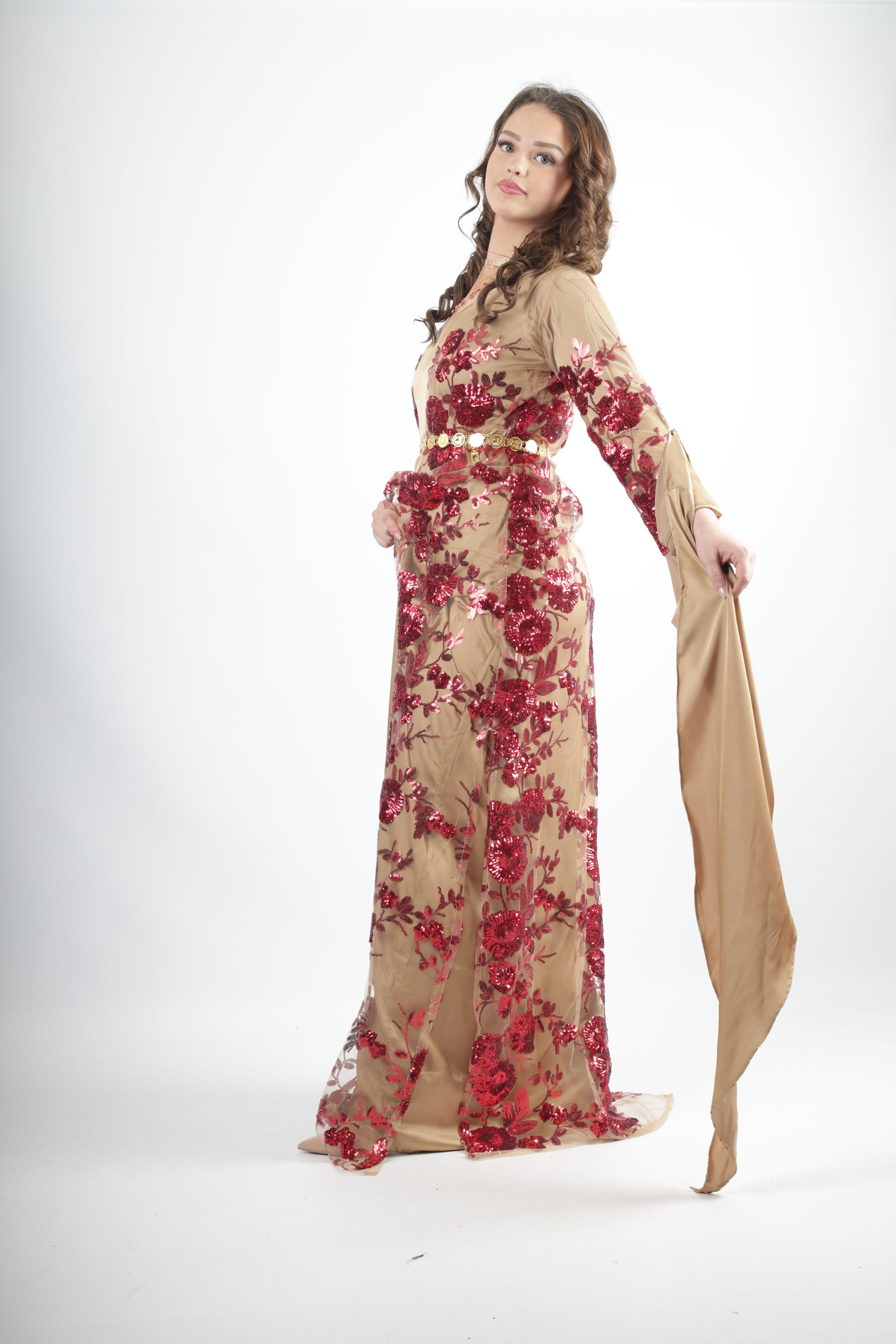 The Dildar Collection is now available in a stunning new color: nude beige skin tone with Red shiny embroidered flowers. This elegant Kurdish dress (Kurdisches Kleid / Cilket Kurdi / Jli Kurdi) is one of our best-selling collections, loved for its comfort, beauty, and timeless Kurdish design.