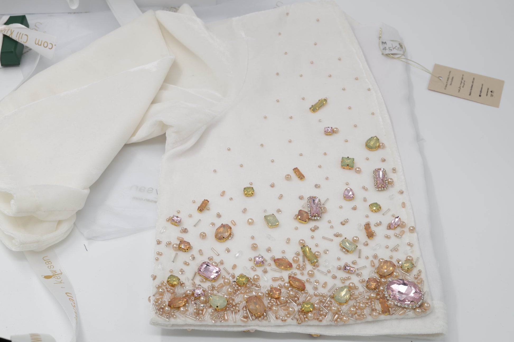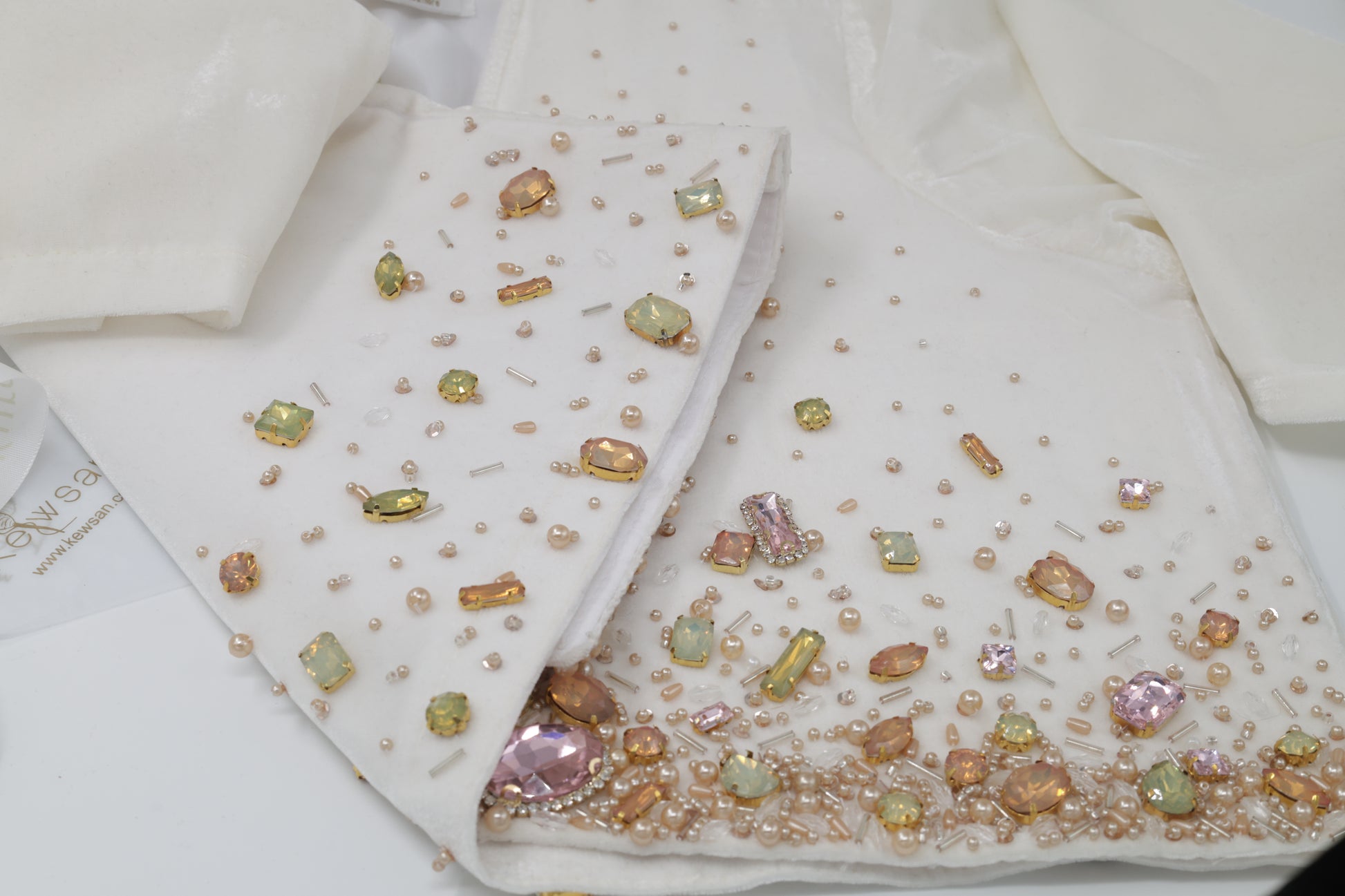 Premium Swarovski crystals: Hand-sewn for a luxurious, eye-catching finish.