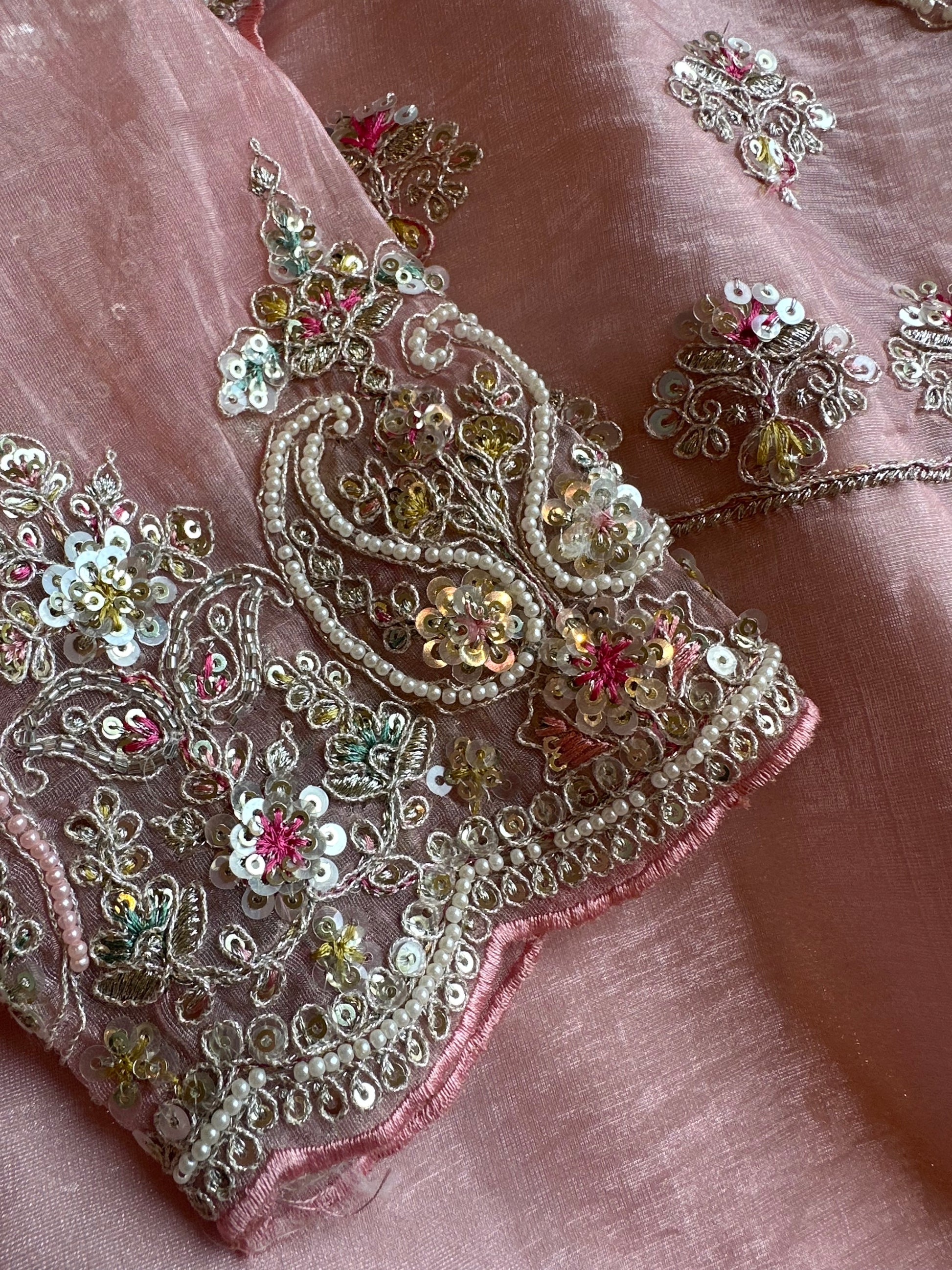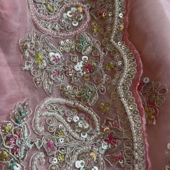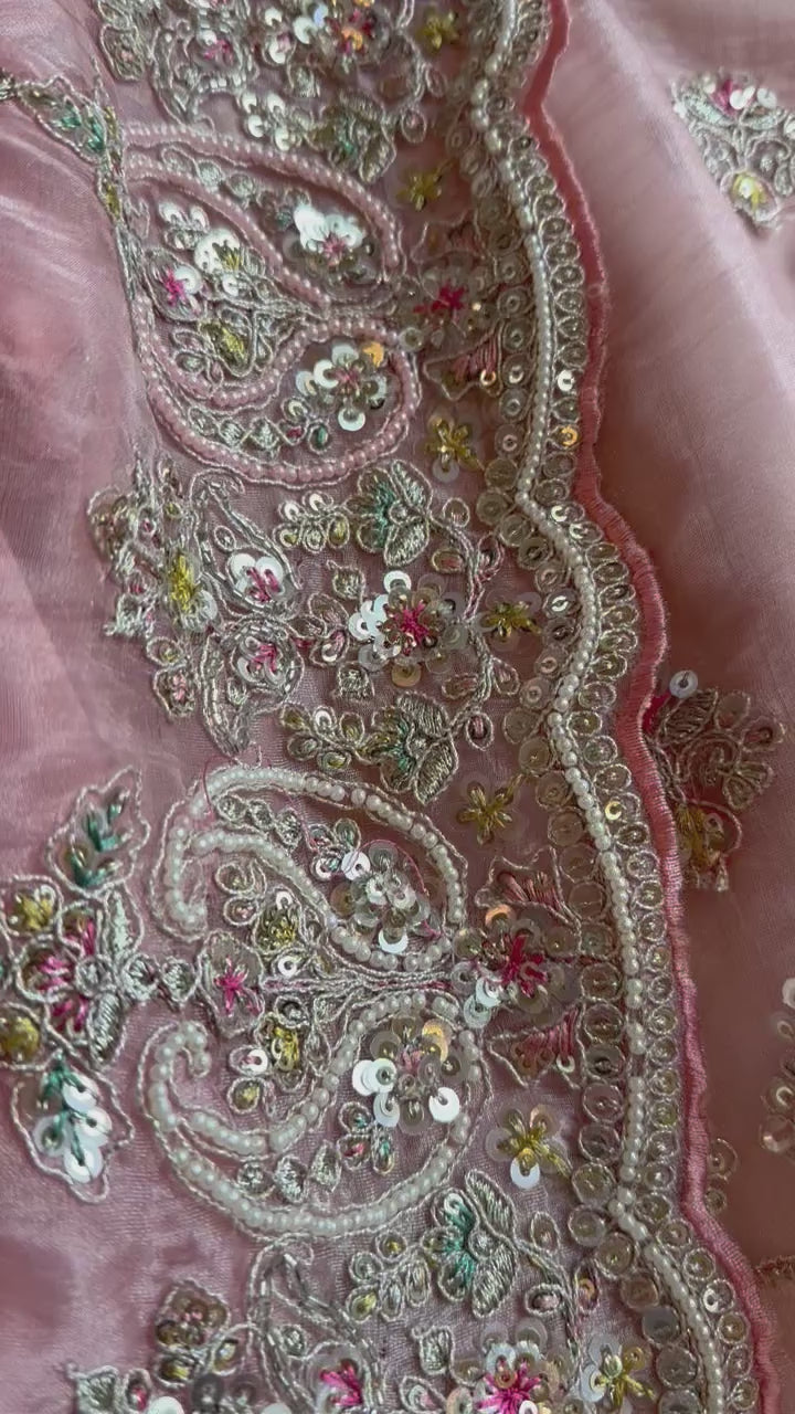 The pink Rose dress features handcrafted embroidery with delicate pearls, beads, and stones. Each detail is carefully applied by hand, creating a luxurious and authentic finish.